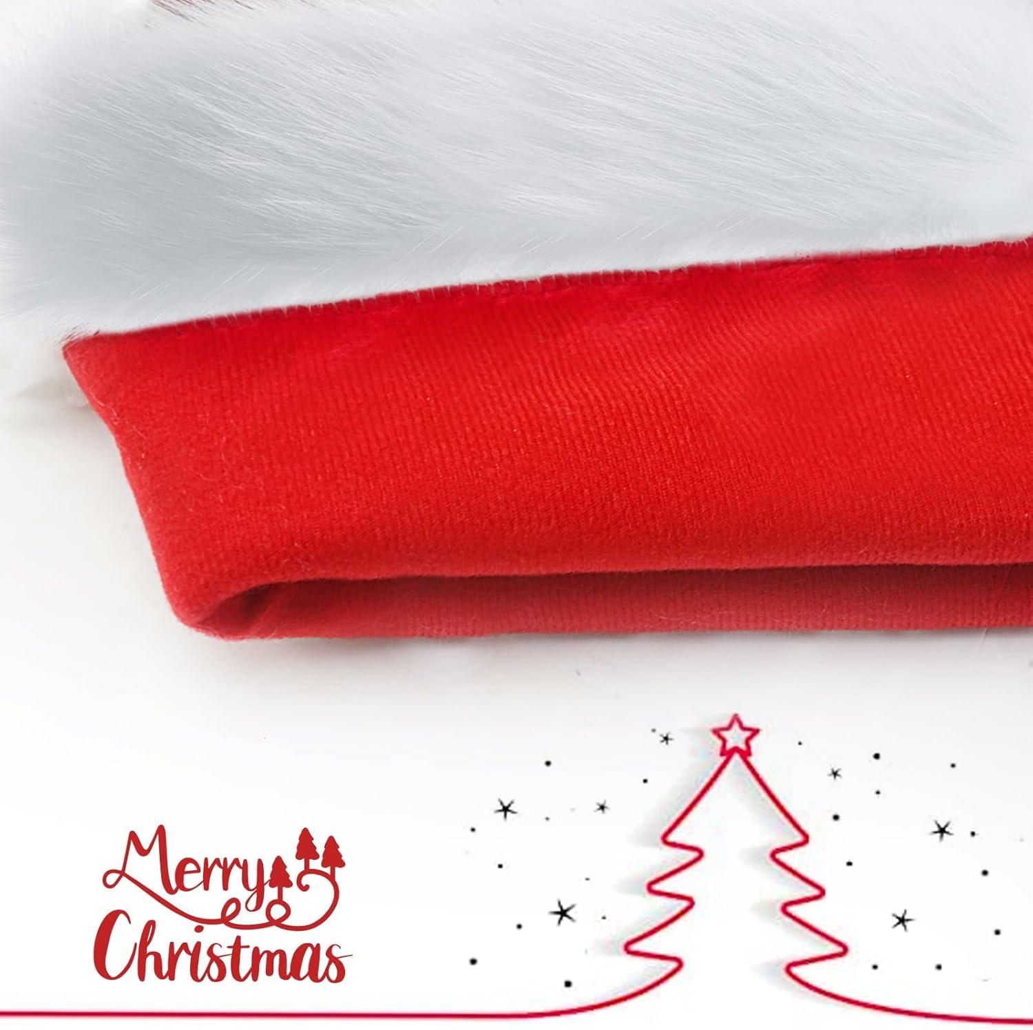 - π High Quality Soft Comfortable: The adults Santa Hat is Made of High-Quality Plush, Red Velvet Fabric And Double Comfortable Liner Make Kids Santa Hats Soft And Good Touch Feeling, The Santa Hat With Thickened Design Lining Can Keep Warm in Cold. Soft Comfortable Fabric to Protect Your Head And Hair Without Irritation Sweat Also Not Feeling Itching, Hand Washable, Not Allergic.