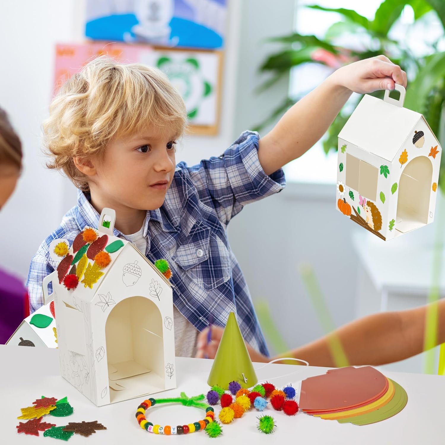 - Fall Woodland Craft Kit: Includes 24 white DIY boxes, mini plush woodland animal keychains, maple leaf stickers, colorful markers, tags, twine, and decorative accessories—perfect for festive gifting.