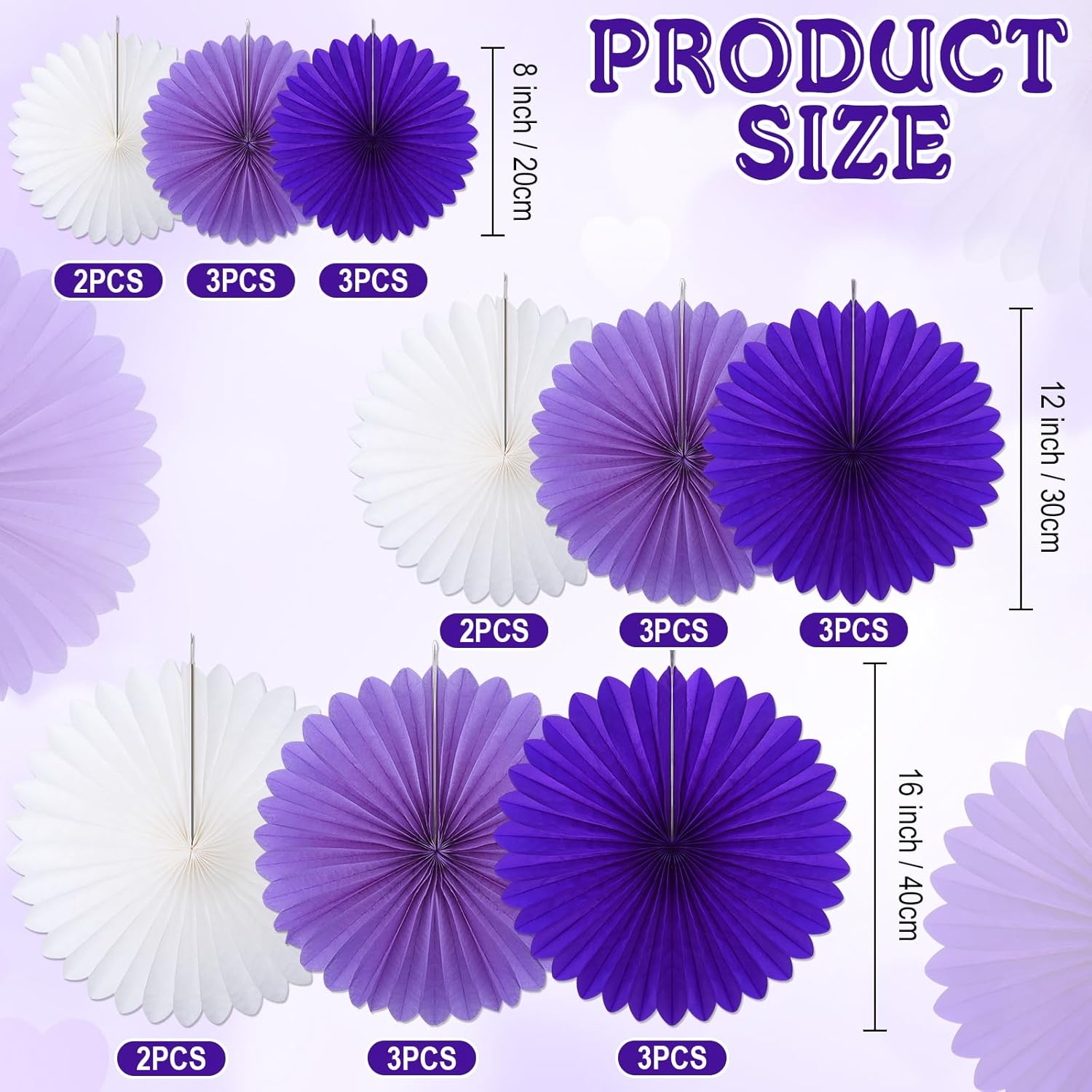- Quality Material: the purple and white paper fans are made of paper, the honeycomb design creates a sense of space, vibrant colors and lightweight paper flowers to hang anywhere on the party decorations, not easy to fade, durable, and can be reused later