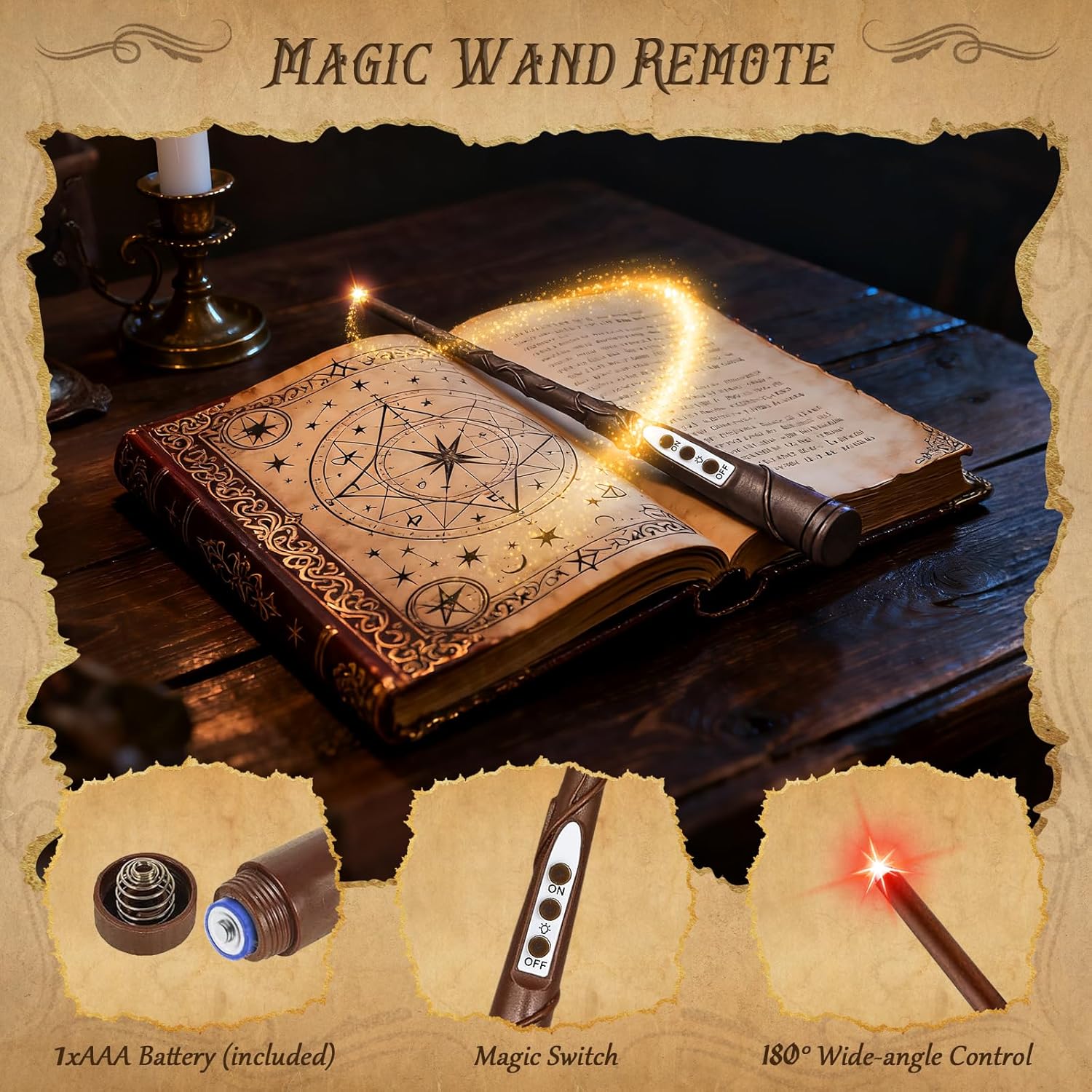- Halloween Decor Candle with Wand Remote: Use the magic wand to light candles on the porch and in the living room, This will make you feel like a magician with true magic on this street and immerse you in a magical world. You can control this floating candle through the rod remote control and adjust the light modes and brightness level as you like, This is very convenient. The magic wand remote requires only 1 AAA battery to power on, and can work up to 200 hours uninterrupted