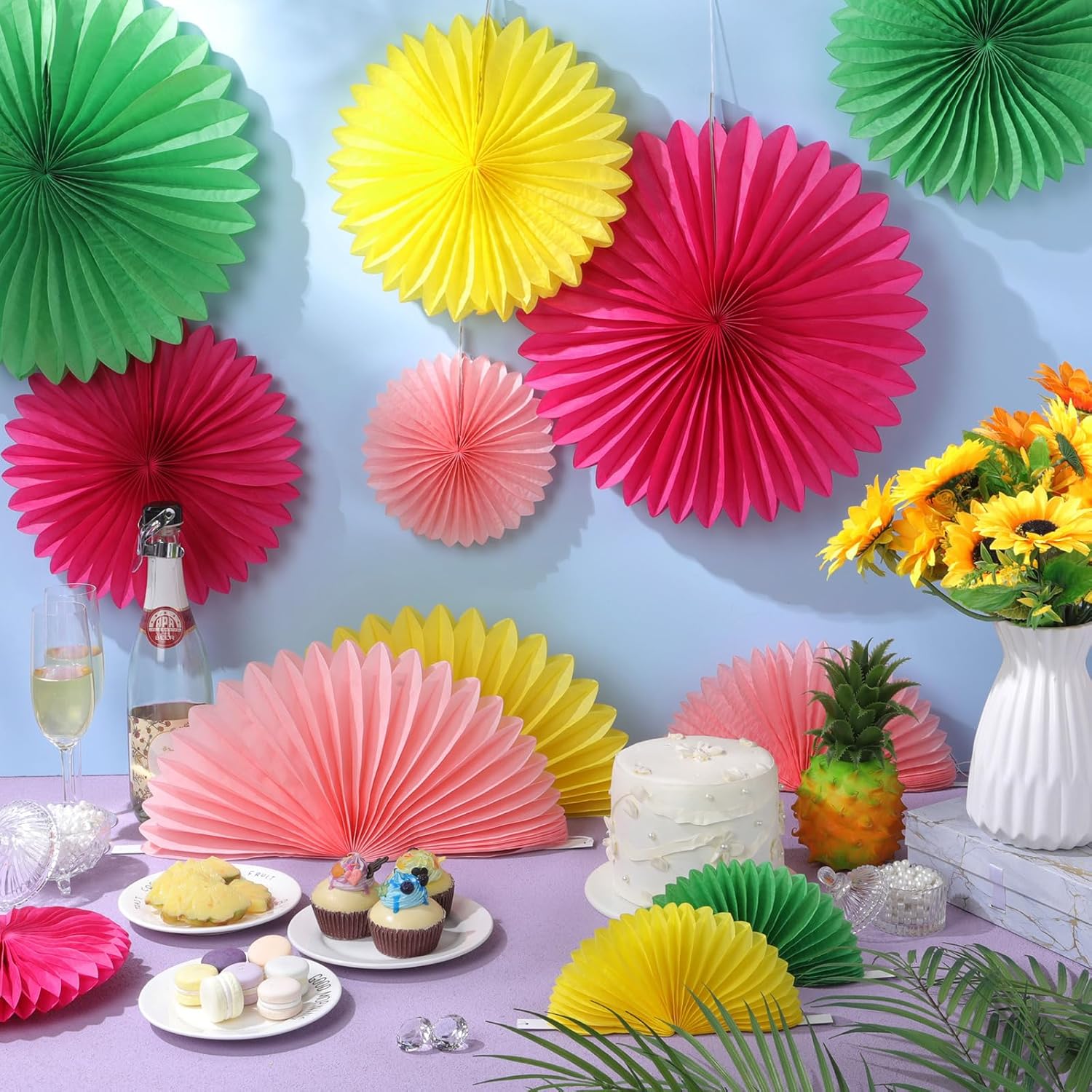 - Vibrant Party Decorations: will receive 24 paper fans in 4 colors, including 8 pcs 16 inches, 8 pcs 12 inches and 8 pcs 8 inches, each paper fan comes with a paper clip and hanging string; The paper fan flower set is not only eye catching but also adds elegance and natural beauty to your party decoration