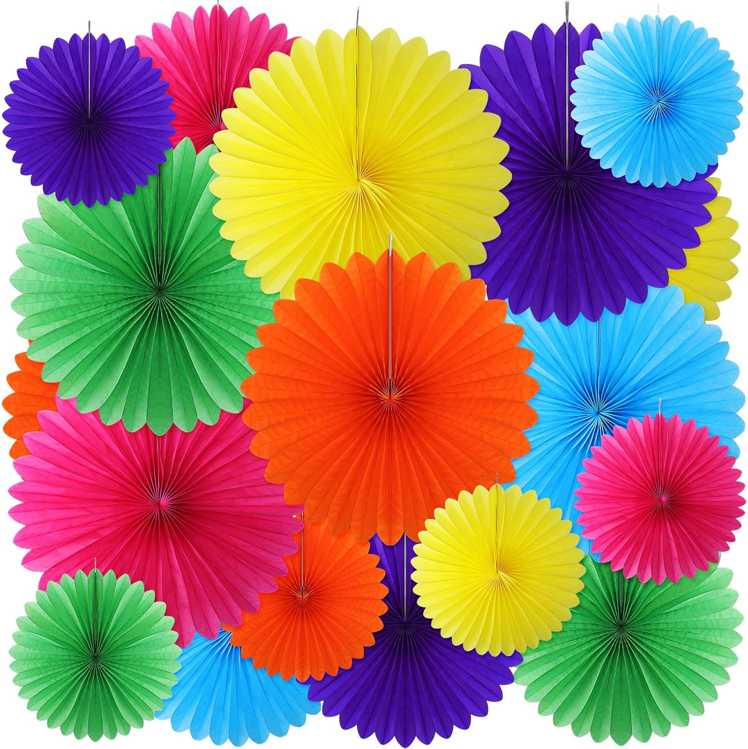 - Vibrant Party Decorations: will receive 24 paper fans in 4 colors, including 8 pcs 16 inches, 8 pcs 12 inches and 8 pcs 8 inches, each paper fan comes with a paper clip and hanging string; The paper fan flower set is not only eye catching but also adds elegance and natural beauty to your party decoration