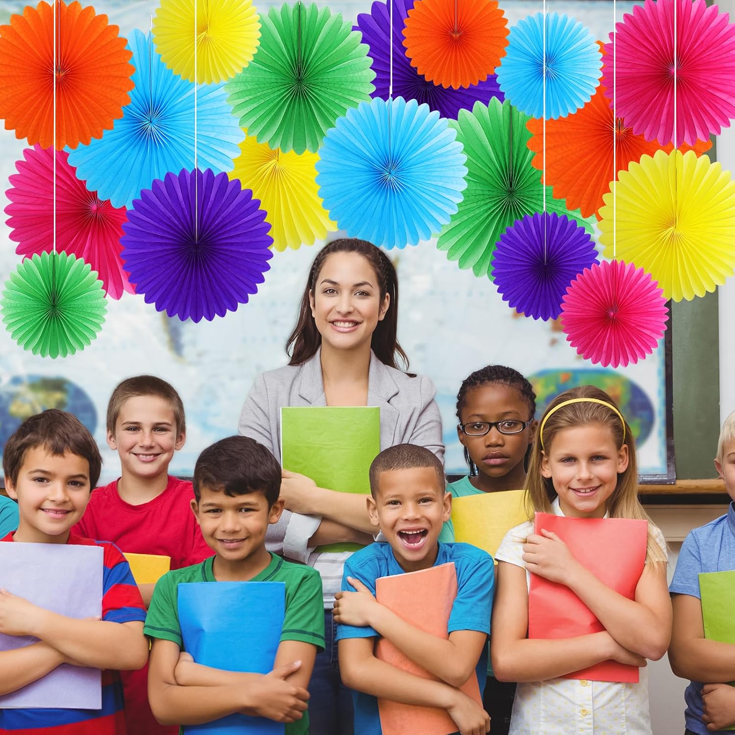 MotiMind 24 Pcs Rainbow Paper Fans Rainbow Party Decorations Classroom Decor Wall Background Ceiling Hanging Decoration for Birthday Wedding Baby Bridal Shower Engagement Party Decor