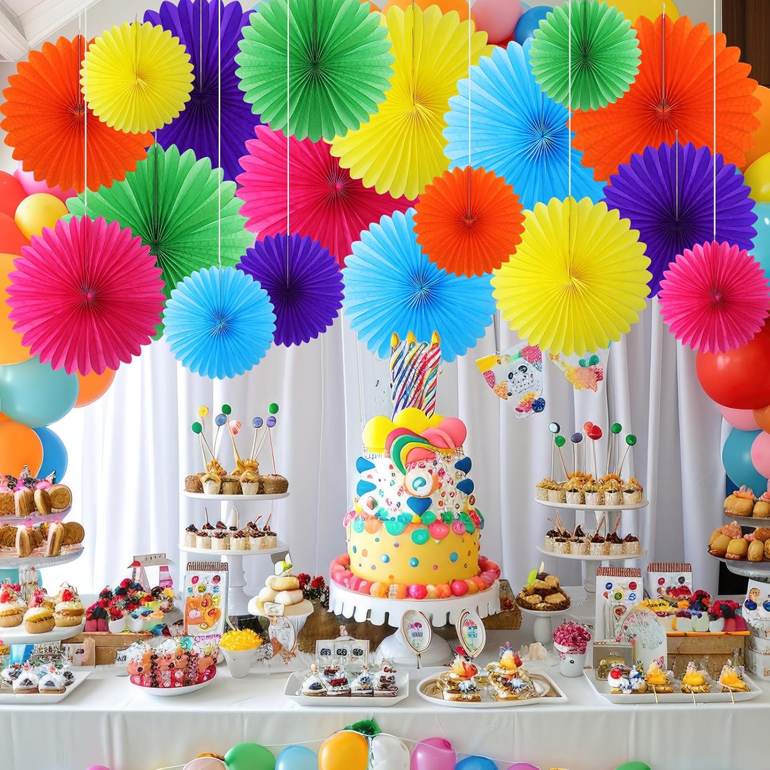 - Quality Material: the rainbow paper fans are made of paper, the honeycomb design creates a sense of space, vibrant colors and lightweight paper flowers to hang anywhere on the party decorations, not easy to fade, durable, and can be reused later