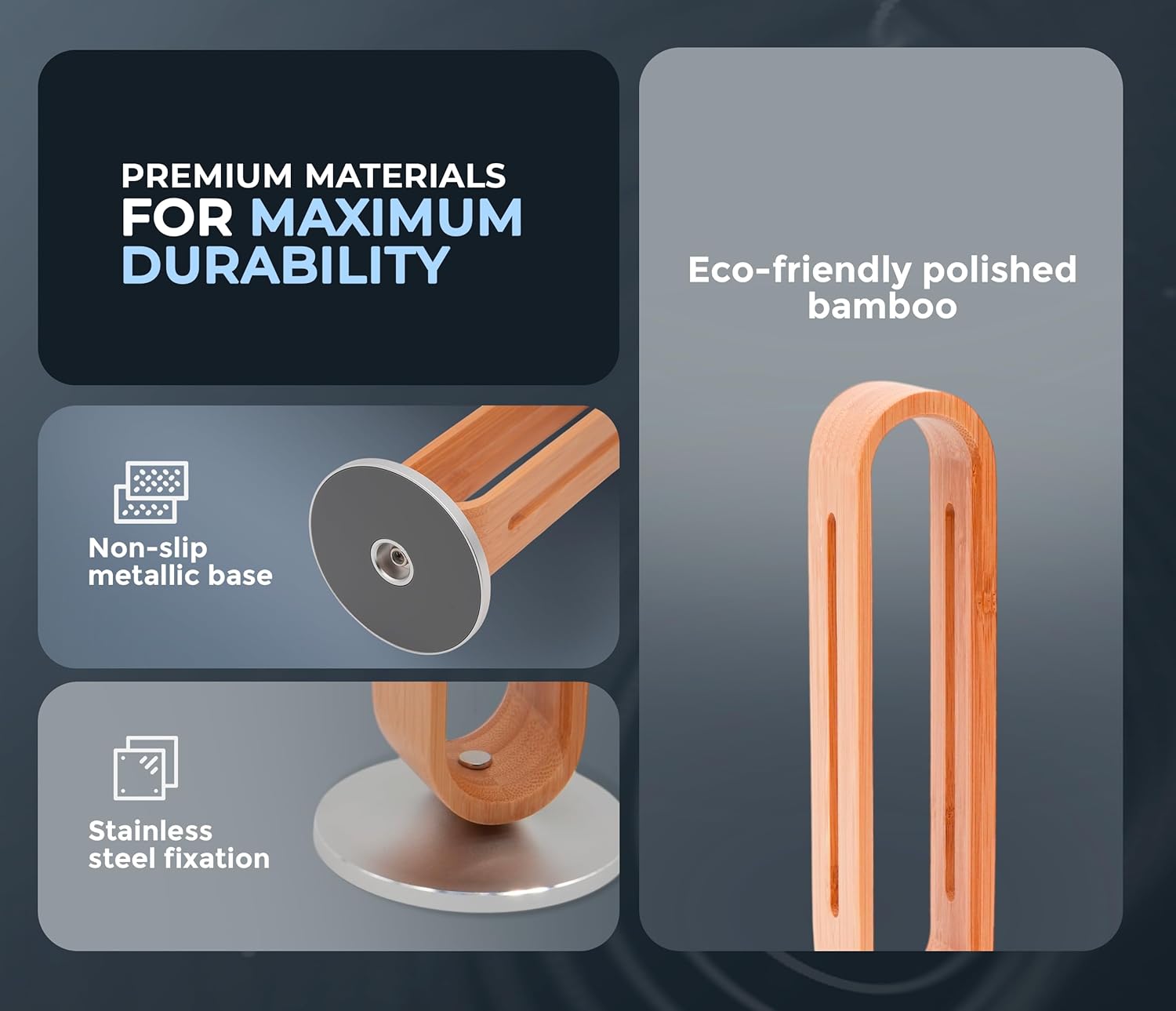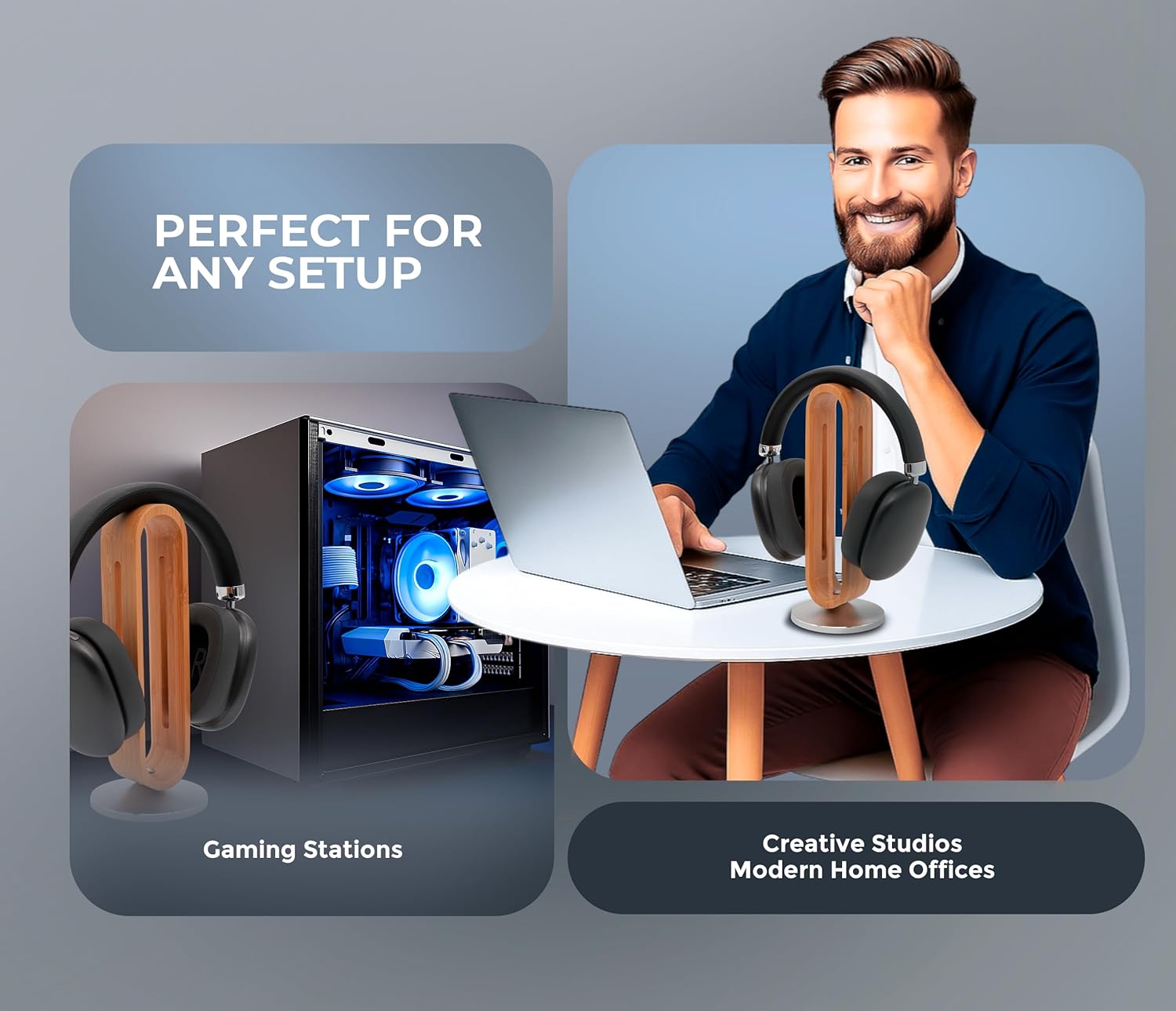 - Durable and Sustainable Materials: Crafted from eco-friendly bamboo and reinforced with metal, this headphones holder offers long-lasting support with a premium touch.