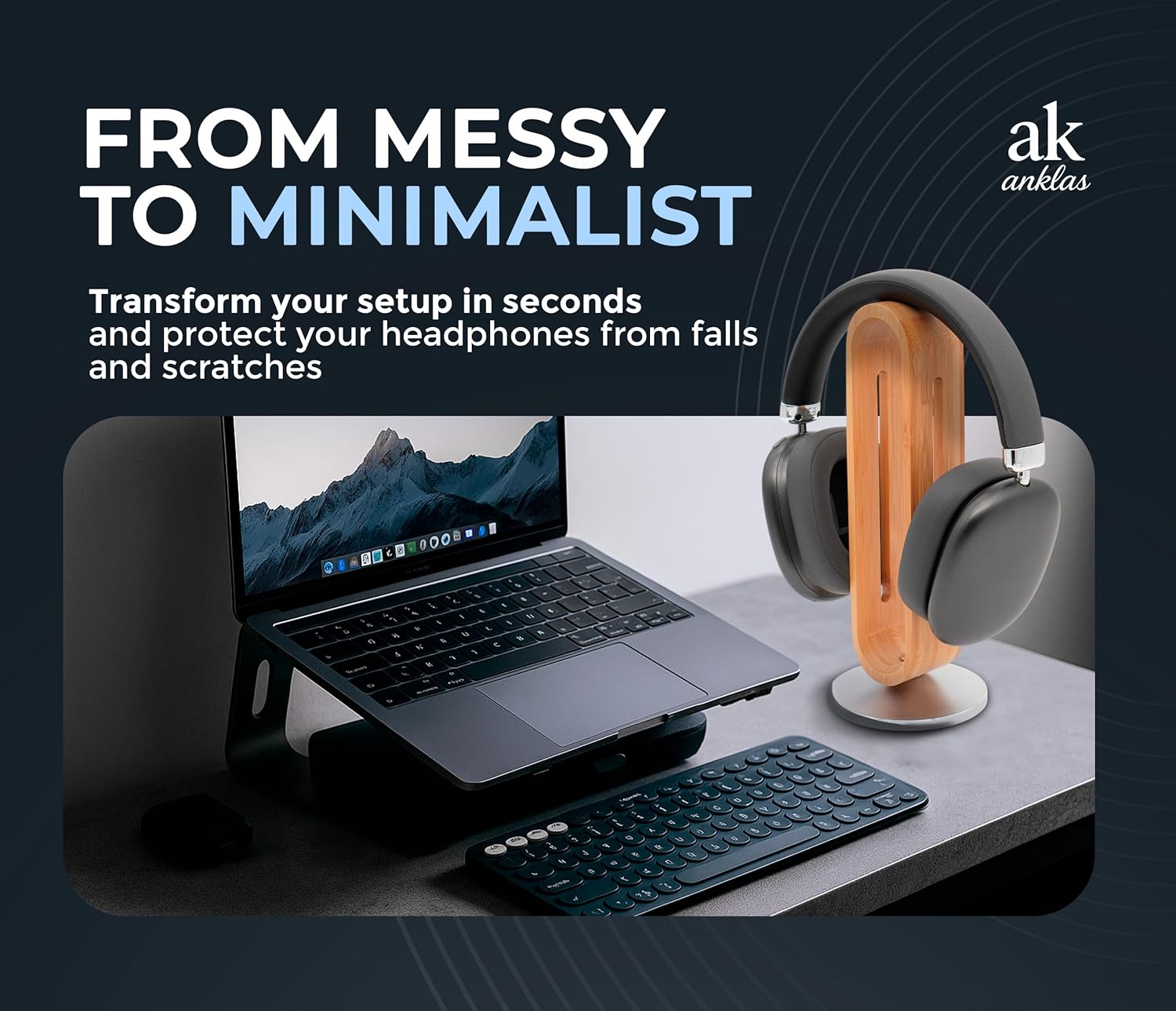 - Elegant and Functional Design: The AK Anklas Minimalist headphone stand combines a smooth bamboo arch with a metal base, adding style and organization to any desk or workstation.