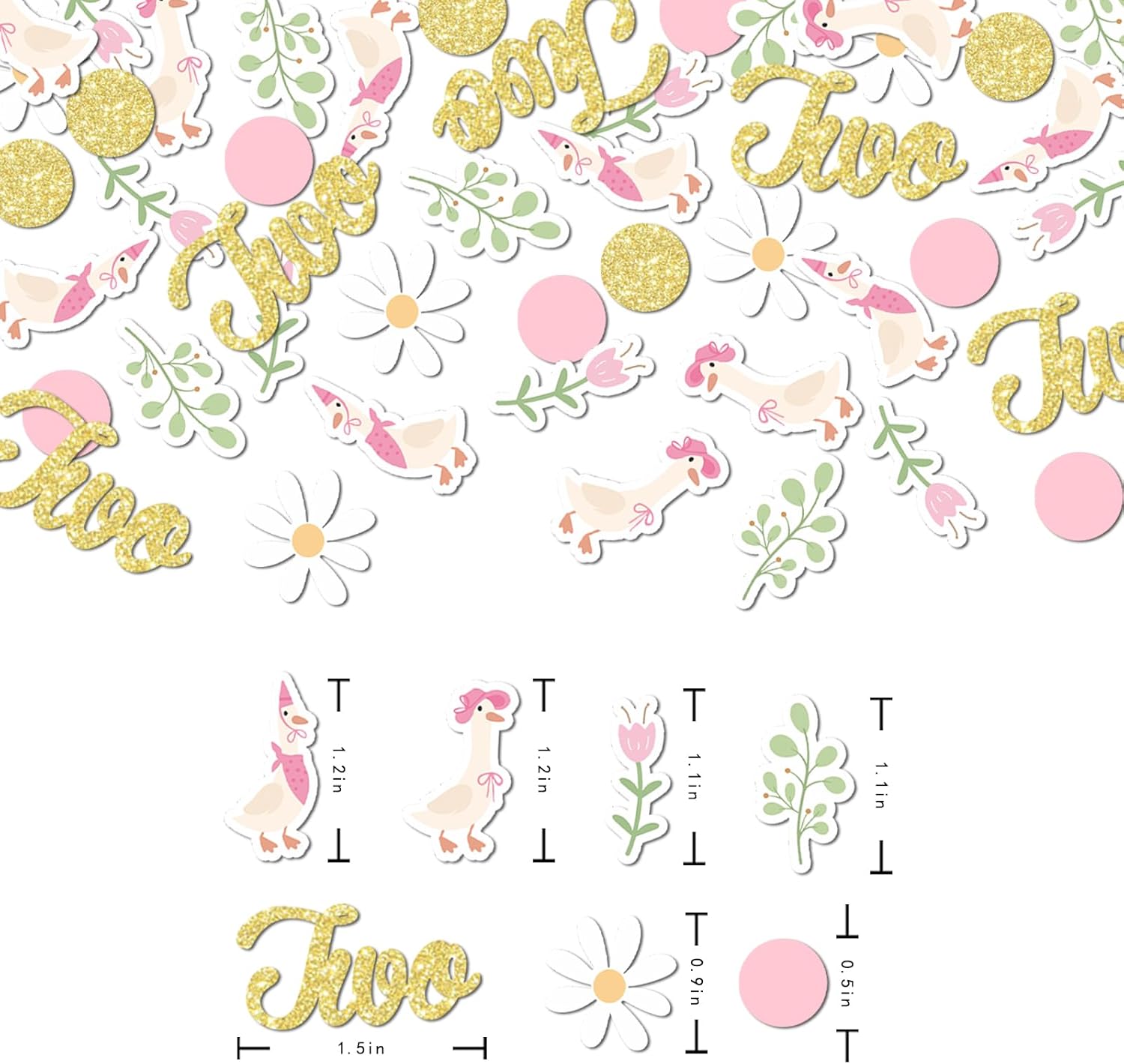 220PCS Two Silly Goose Birthday Decorations for Girl, Goose Dot Leaves Flower 2nd Birthday Confetti for Pink and Gold 2 Year Old Bday Decor