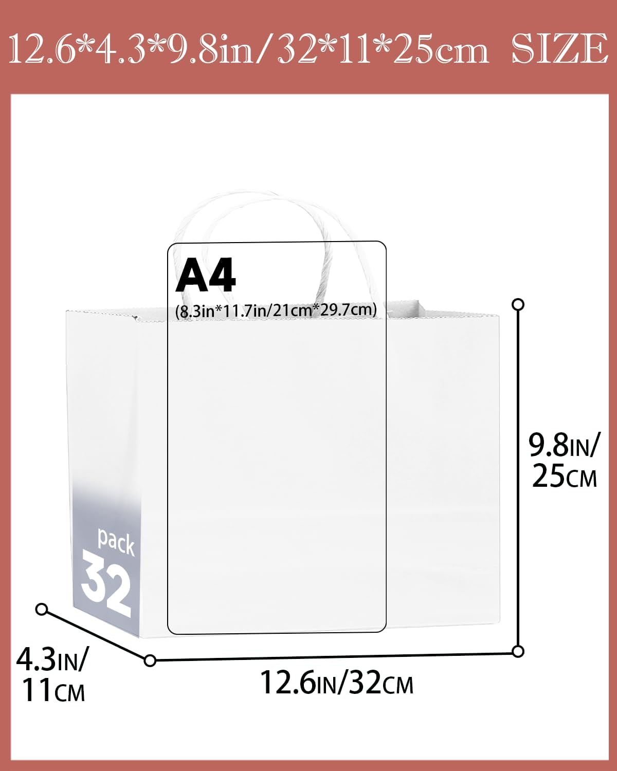 - Color & Size: White Party Birthday Present Bag/ 50Pcs / Wide: 12.6"x4.3"x10"