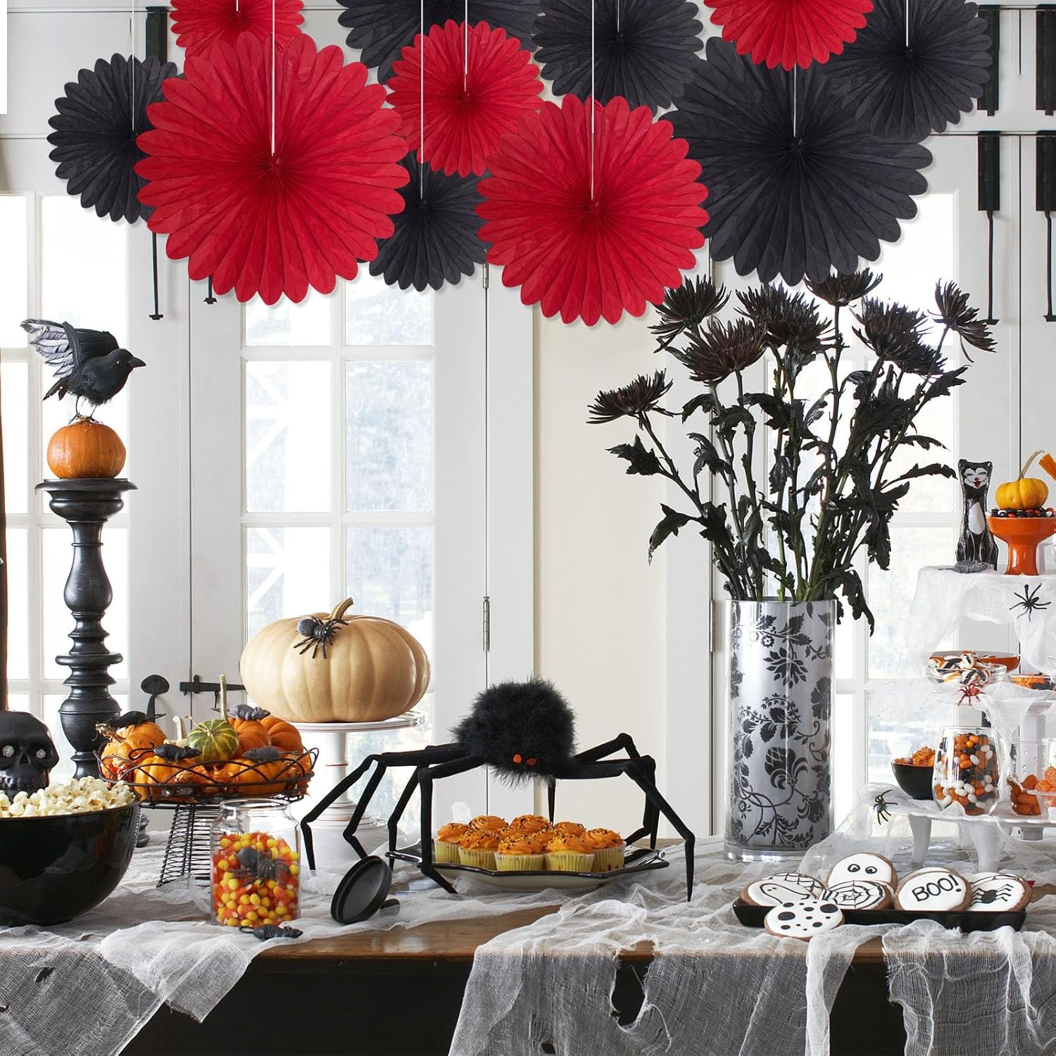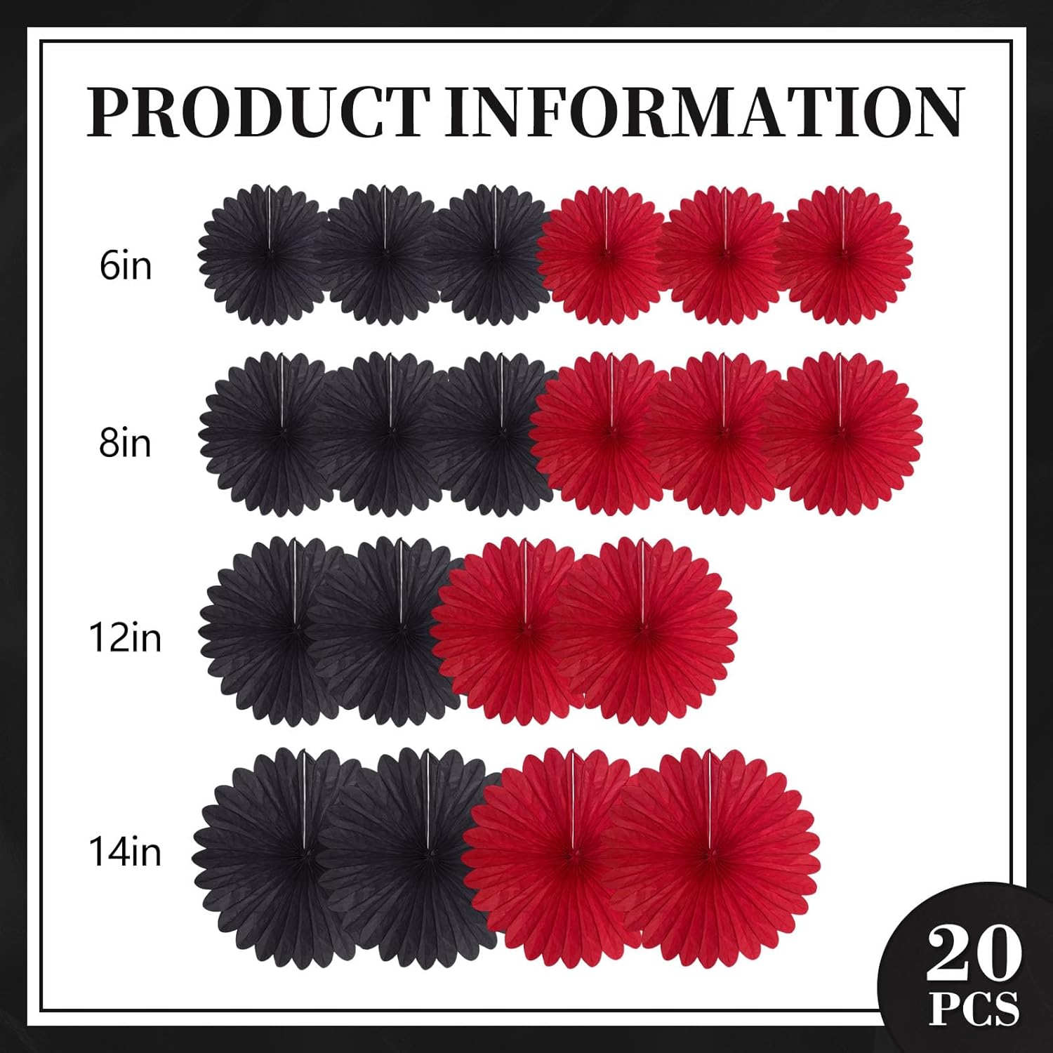 20 Pcs Black Red Hanging Paper Fan, Hanging Honeycomb Round Paper Fans for Weddings, Birthdays, Christmas, Baby Showers, Classroom, Events Ceiling Party Supplies Decorations