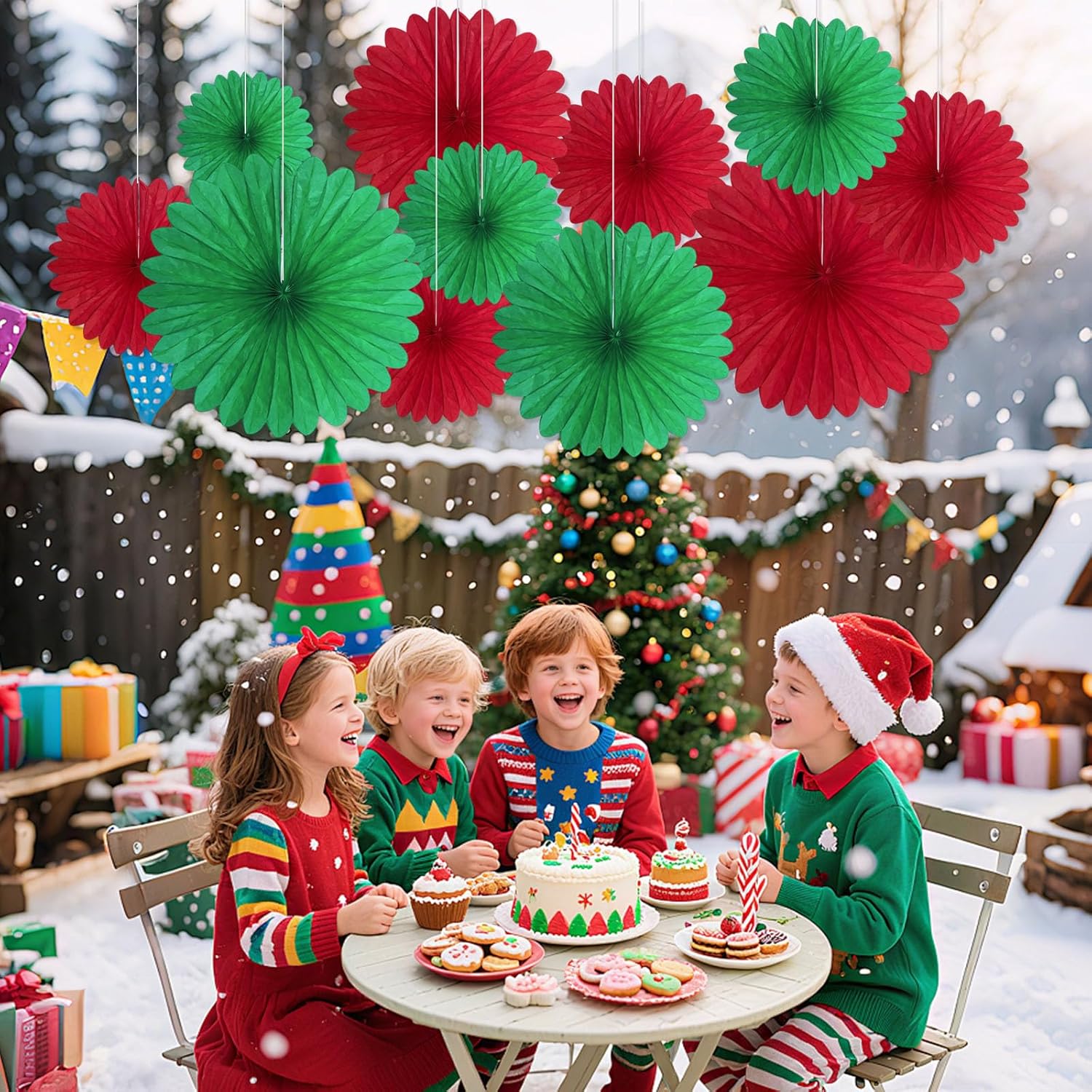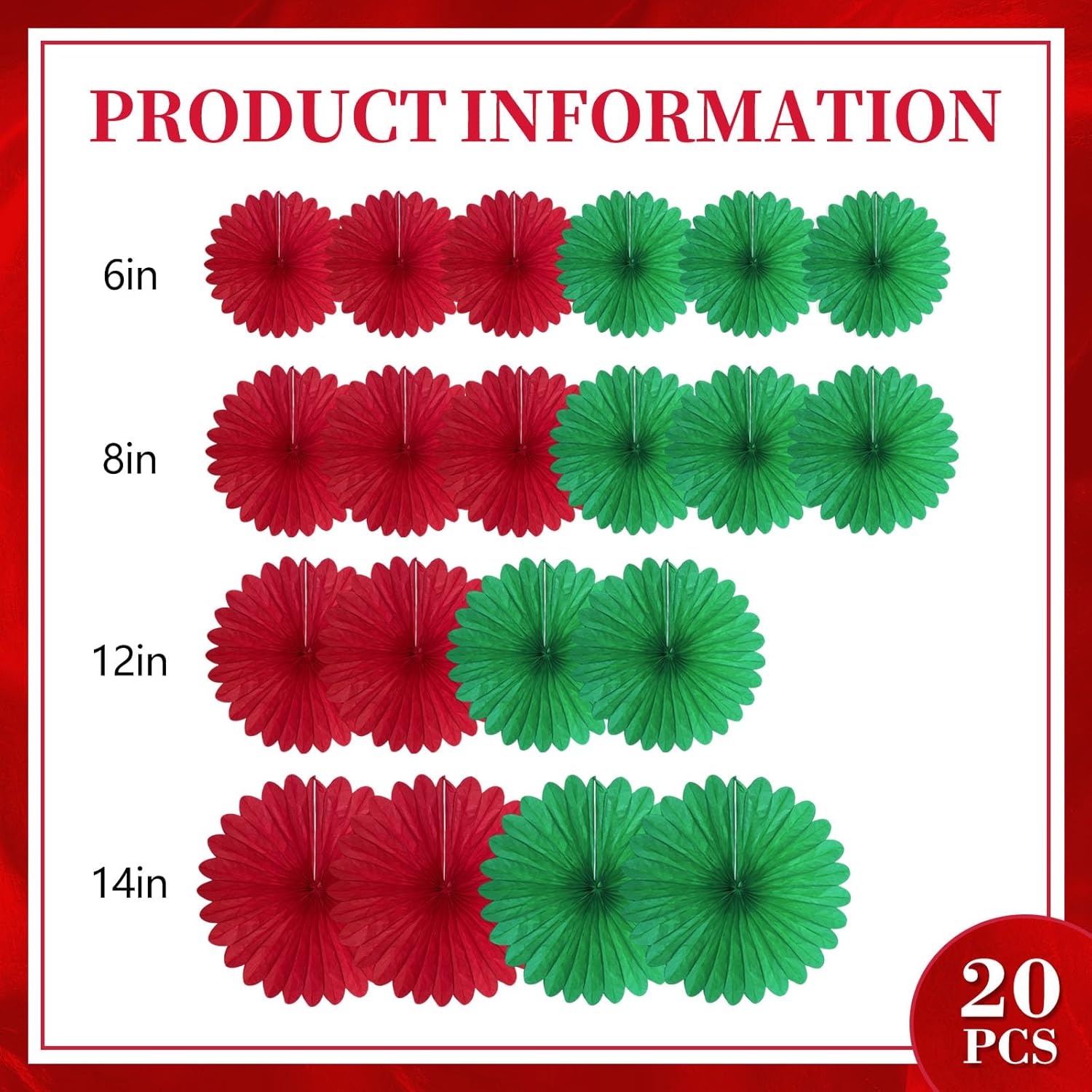 20 Pcs Red Green Hanging Paper Fan, Hanging Honeycomb Round Paper Fans for Weddings, Birthdays, Christmas, Baby Showers, Classroom, Events Ceiling Party Supplies Decorations