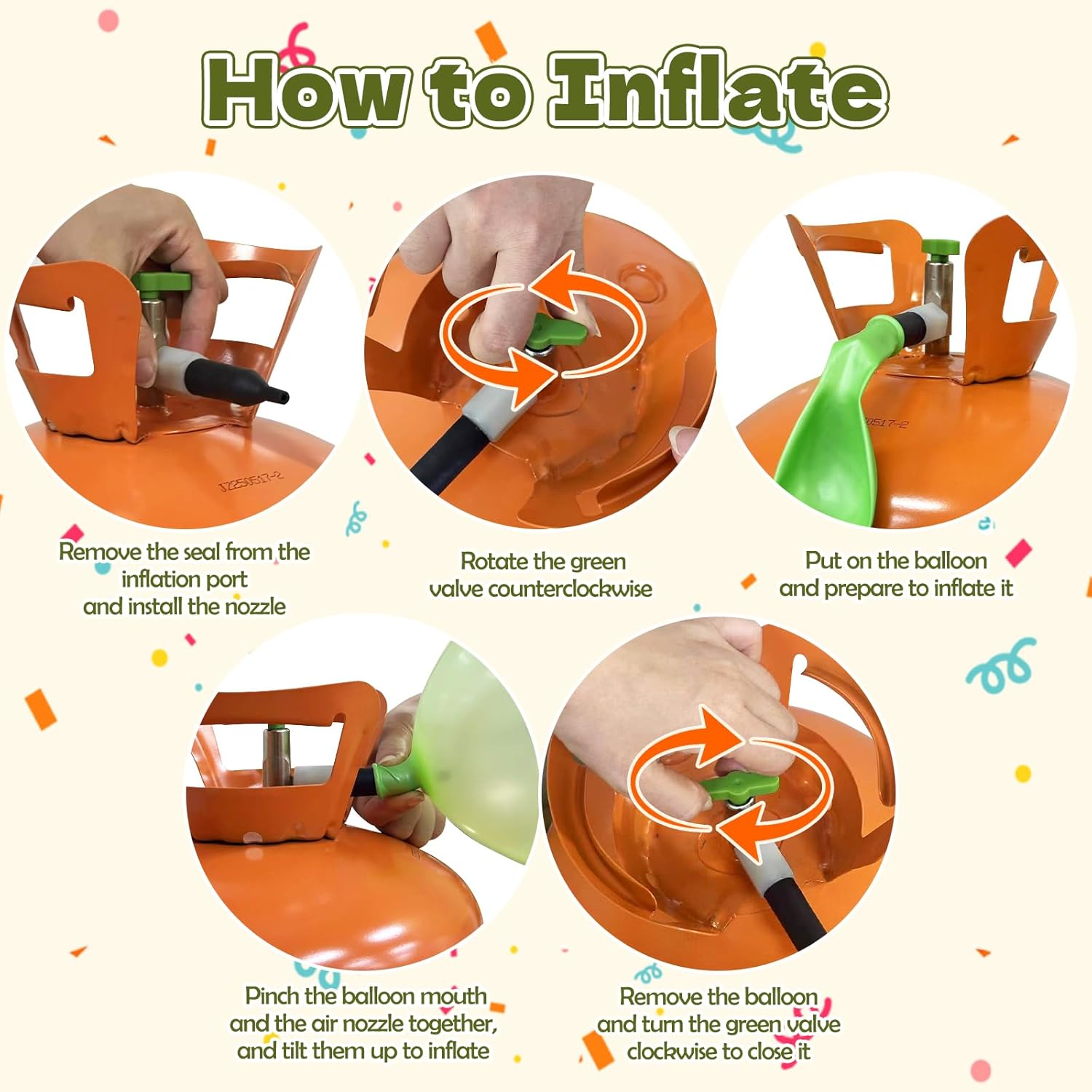 - Helium Tank:1 Tank,99.99% Pure Helium (Non-flammable, Non-toxic - Safe for Indoor Use),12.96cu.ft of helium per tank can fill 50 Standard 9-inch Latex Balloons** (Balloons provided are 12-inch size - inflate to 9" for best results).