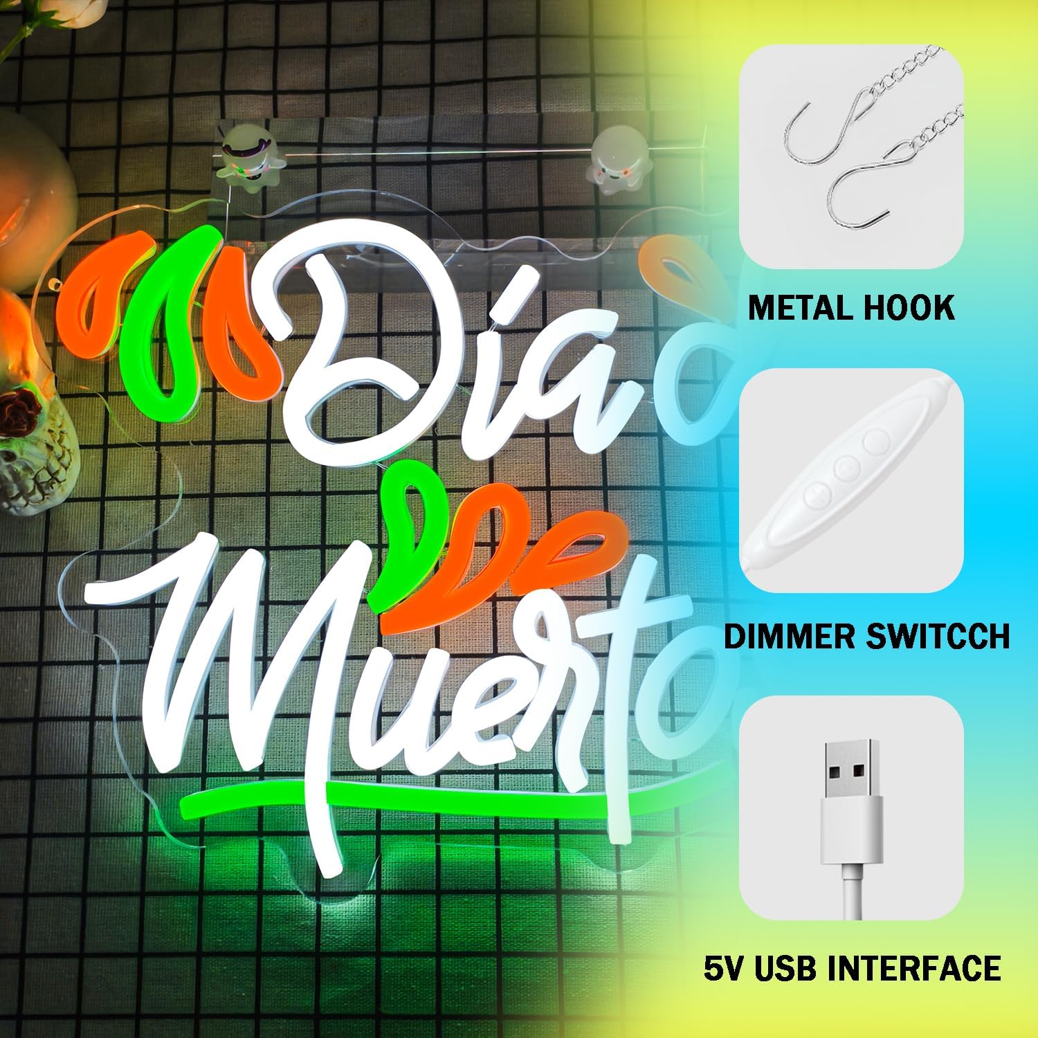 - 【Day of The Dead Theme Design】Celebrate Halloween or Day of the Dead with a Day of the Dead neon sign! Perfect for indoor decorating, it creates a spooky atmosphere and immerses your family in the Halloween and Day of the Dead spirit. Ready to scare and delight all your neighbors and guests. Throw a spooky party!