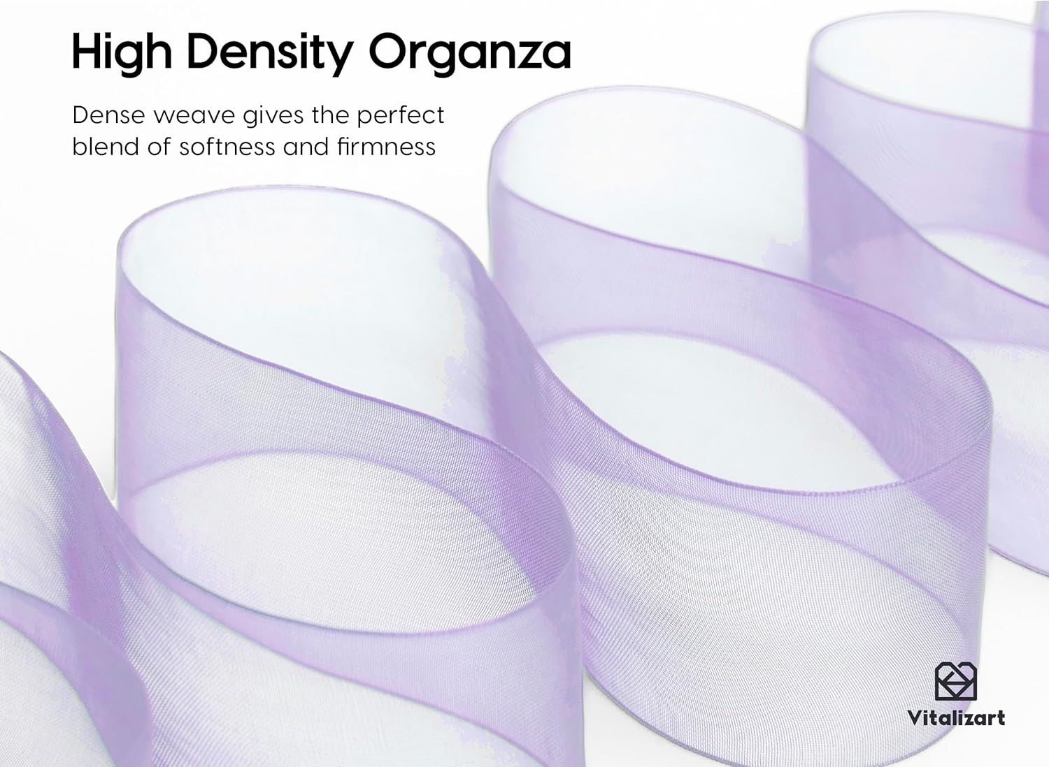 Vitalizart Organza Ribbon 1.5" x 30 Yd Lavender Purple & Cream White Sheer Ribbons for Gift Wrapping Crafts Christmas Wreaths Bows Party Decor Wedding Bouquet