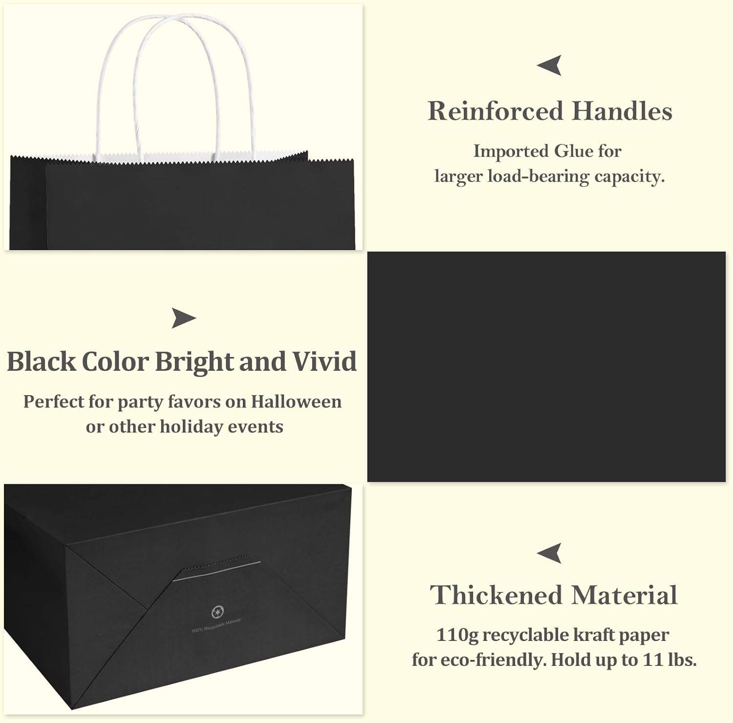 - Black Paper Bags: The white twisted handles and interior make these black bags look professional and sharp. Perfect for gift wrapping, party favors, goodie bags, and retail use. Ideal for craft shows, art festivals, and holiday events