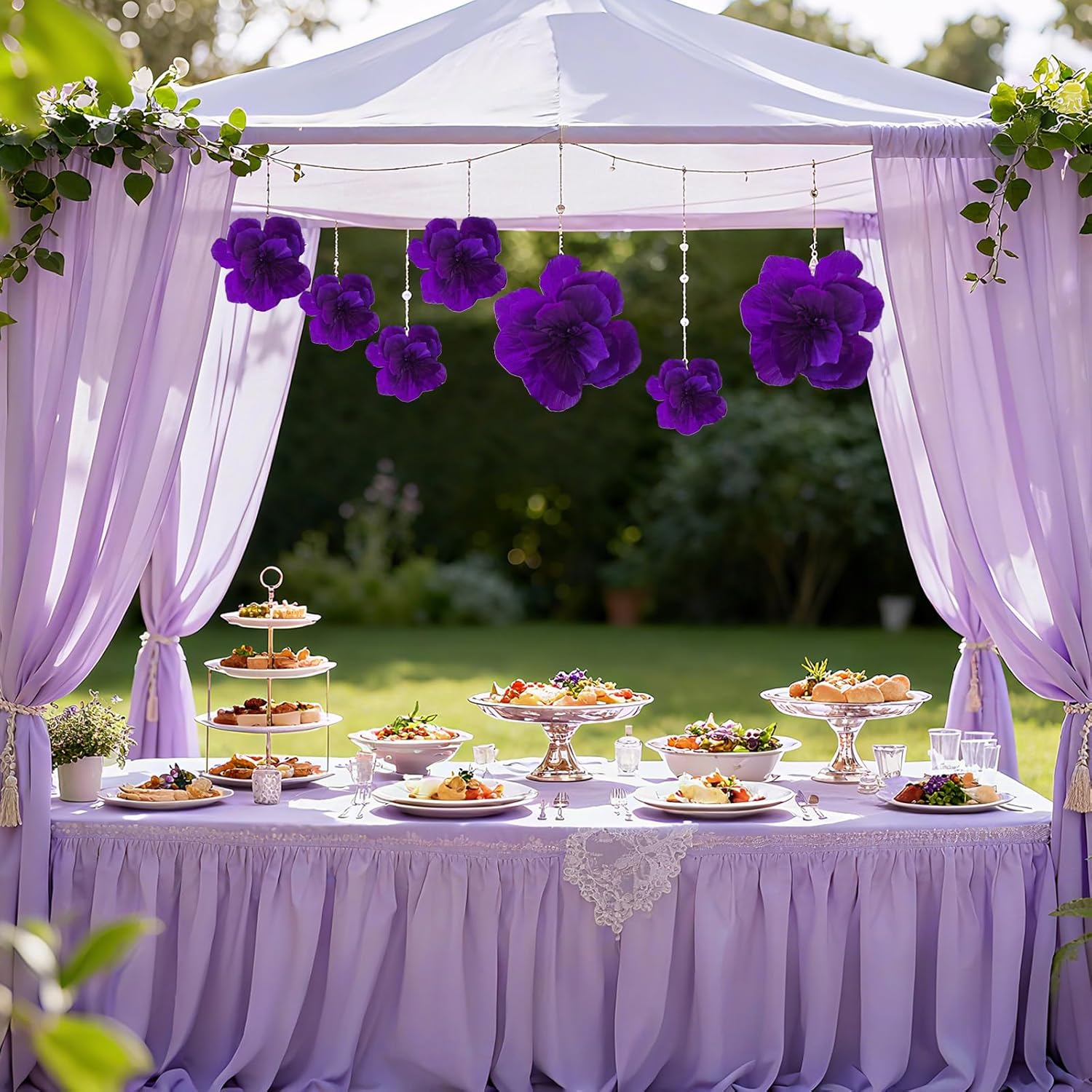- Crepe Paper Flowers: Total 9pcs purple paper flowers in 3 sizes 12”, 10”, 8”.