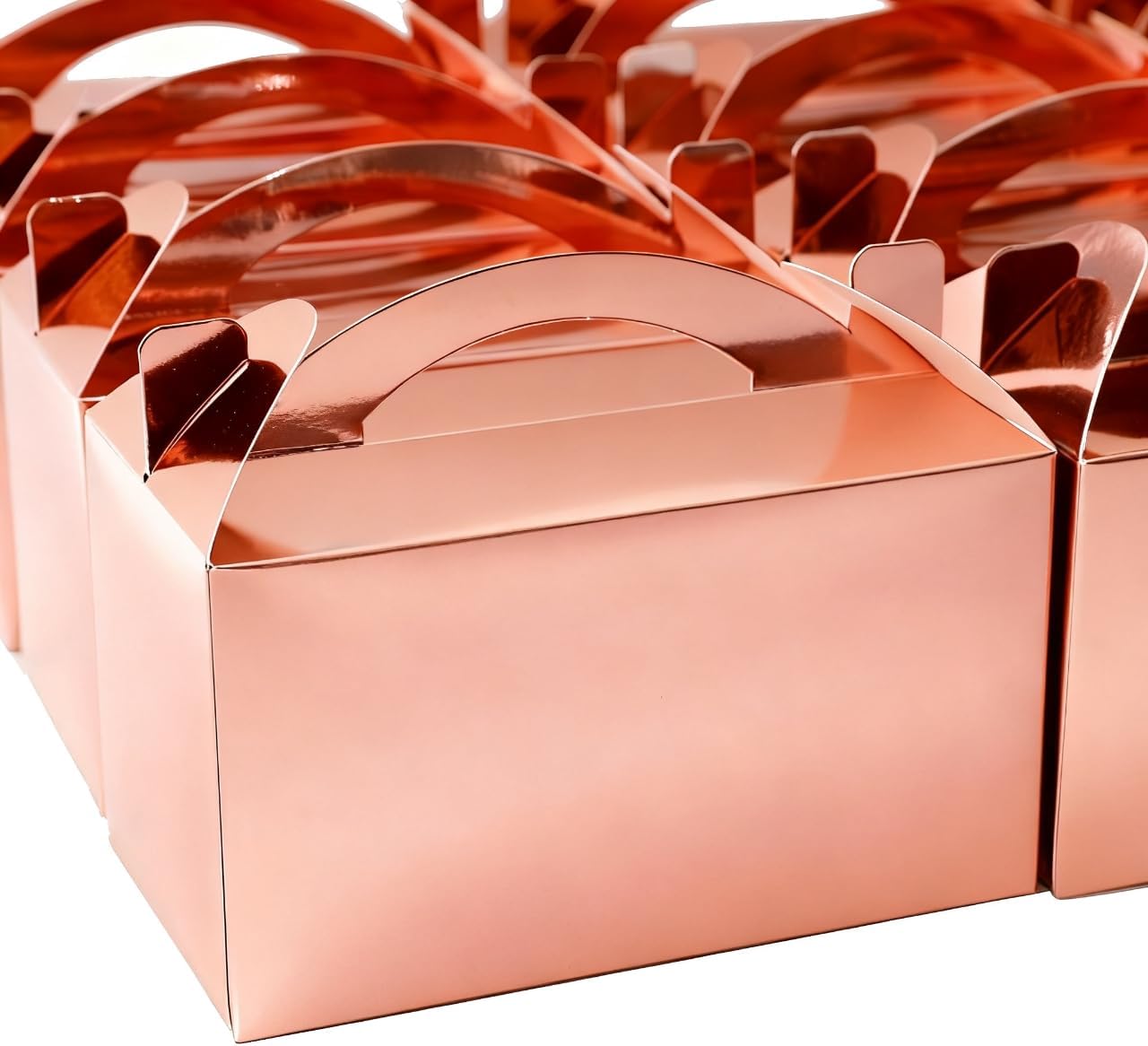 30-Pack Rose Gold Gable Treat Boxes with Handles, 6" Pop-Up Party Favor Gift Boxes for Birthday, Wedding, Baby Shower, Eco-Friendly Candy, Cookie, Goodie Bags for Kids, Bachelorette Decor