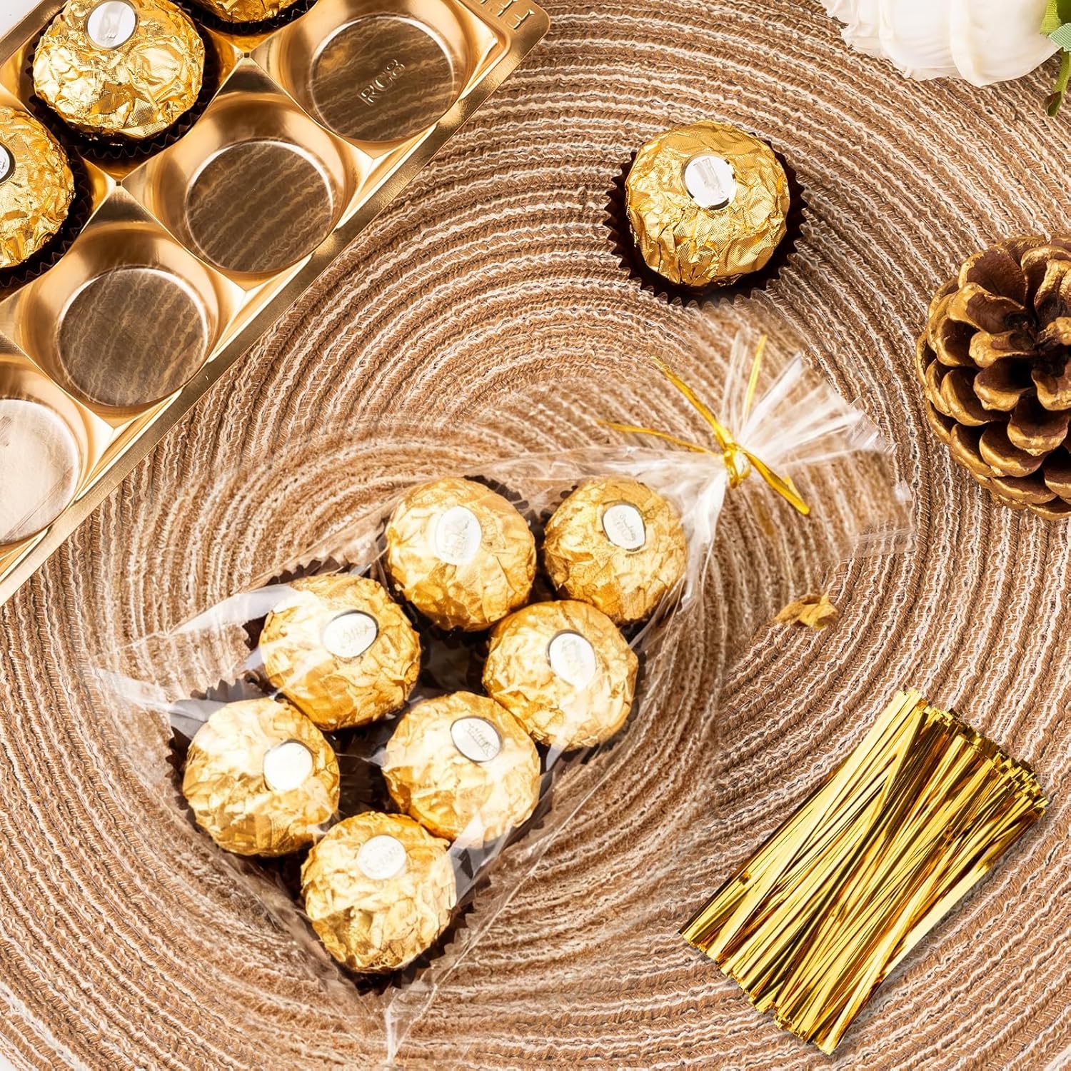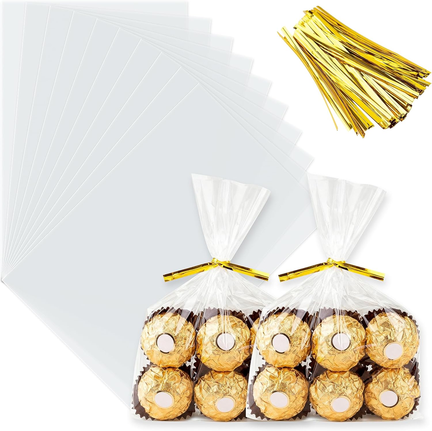 - 【Widely Applicable & Bulk Ready】- Whether you need candy bags for party favors, treat bags for celebrations, or clear cello bags for small business packaging, this set has you covered. Our clear cello bags can help you beautifully decorate and wrap your snacks or gifts prepared for graduation, birthday parties, weddings, Christmas, Halloween, Valentine's Day, Easter, and Thanksgiving. Perfect for homemade cookies, candy, snacks, cake pops, nuts, lollipops, berries, and small gifts.