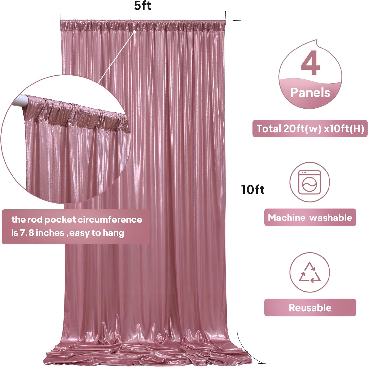 - Wrinkle Free Fabric: Silky Touch Feeling; Drape Nicely; Washable; Ironable; Reusable. You can keep this shiny backdrop drapes for future events. The soft fabric backdrops are perfect to create beautiful folds or leave it flowing loose onto the floor.