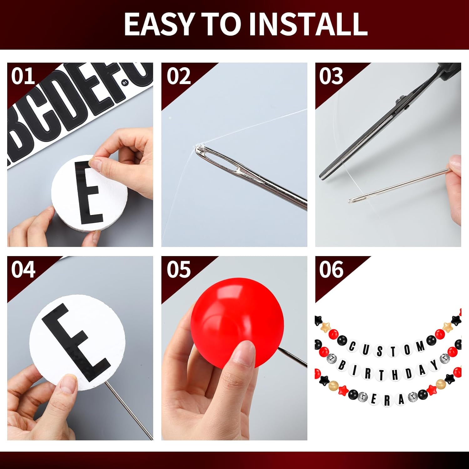 - Easy DIY: stick the letter stickers on the foam circle to form the word combination you want, tie the fishing line to the embroidery needle, and then pass through the disco ball, foam circle, and ball in turn, you can easily create any banner; No need to buy separate custom banners