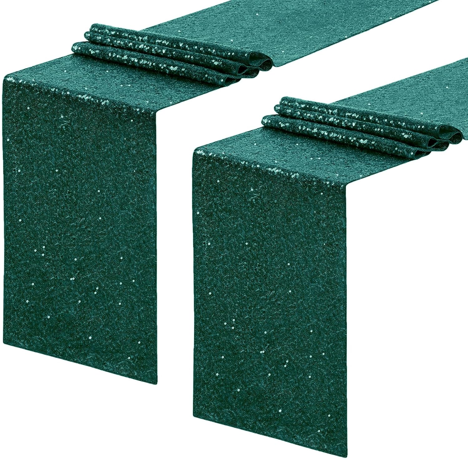 - Emerald Green Sequin Table Runners: Package includes 2 pack of emerald green table runners for your daily use. Measured about 12x72 inches(30x180cm). Great ideal for wedding table decorations for the receptionthe sequin table runners is long enough to fit rectangle and round tables that can seat 6 to 10 people.