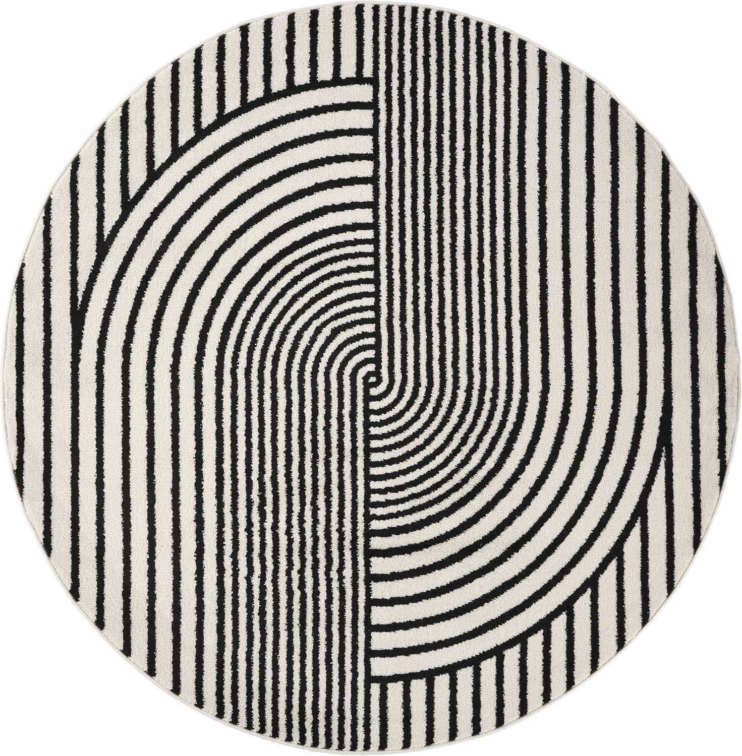 Abani Nuevo Collection Area Rug - Mid-Century Black and White Arch Knot Design - 6' Round - for Living Room, Bedroom & Office