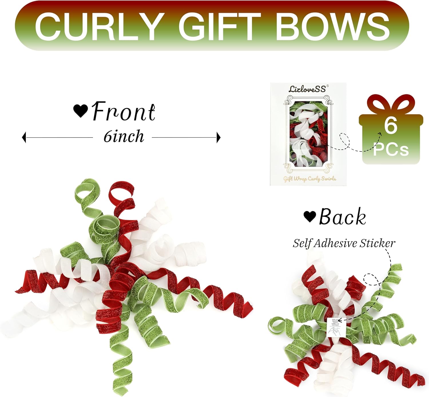 - π Pack of 6: Includes six curly ribbon bows to decorate multiple presents or create coordinated gift sets.