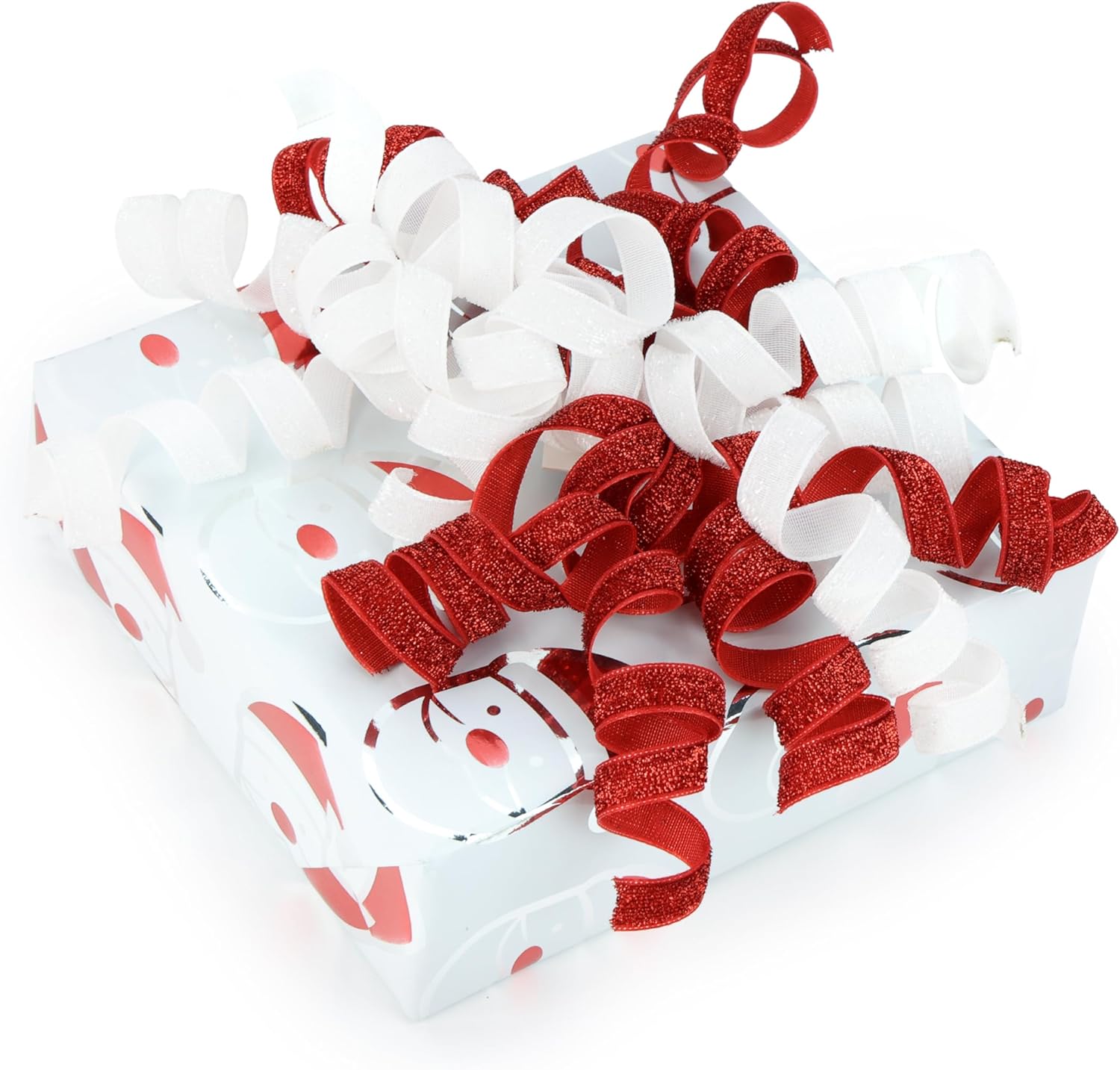 6" Metallic Glitter Red and White Self Adhesive Curly Ribbon Gift Wrap Bows for Christmas, Holiday, Birthday, Wedding, Presents, Party Favors Decorations 6-Count
