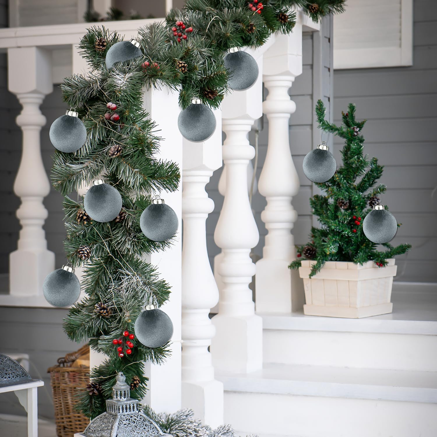 - Gray Velvet Christmas Balls - This earth-toned set includes 15 large ornaments in a chic gray. Each measures 3.15 inches, striking the perfect balance of scale and sophistication for your Christmas tree.
