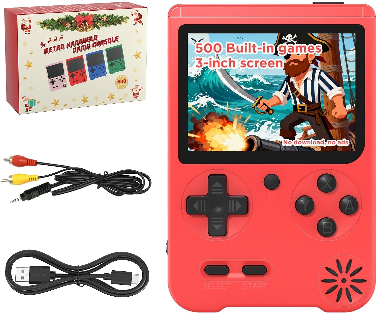 Retro Handheld Game Console, 3-inch Portable Game Console with 500 Built-in Classic Games, 1200mAh Rechargeable Battery,Plug & Play Video Games, Suitable for Adults - Red