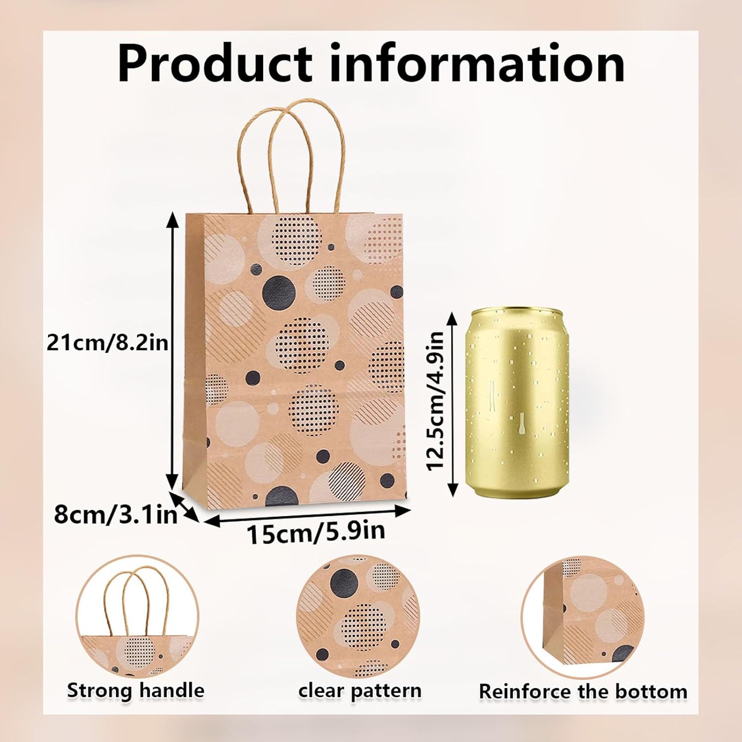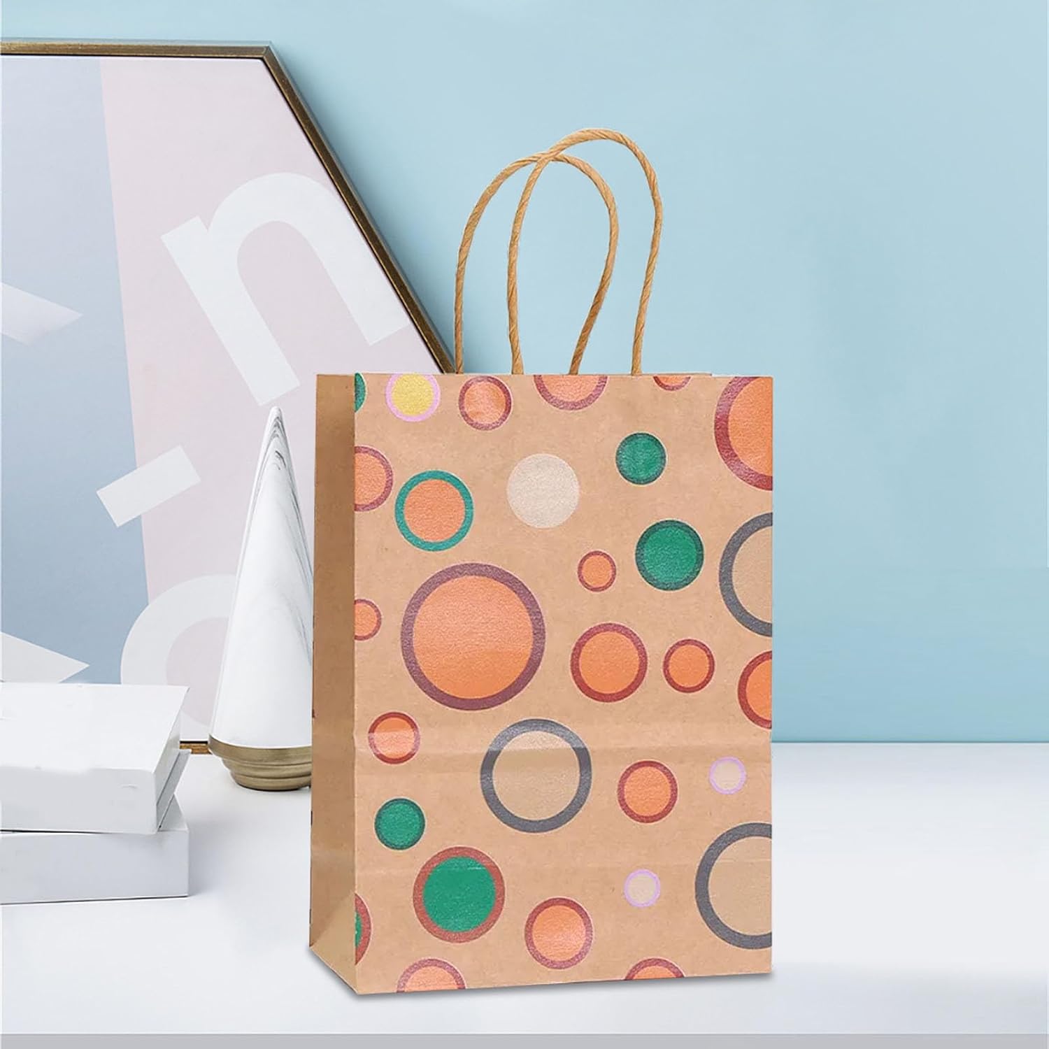 - 24-Pack with 4 Vibrant Dot Designs: This set includes 24 kraft paper gift bags featuring 4 eye-catching patterns—colorful polka dots, circles, and spots in various hues. The diverse designs add a playful touch, perfect for adding personality to any occasion.​