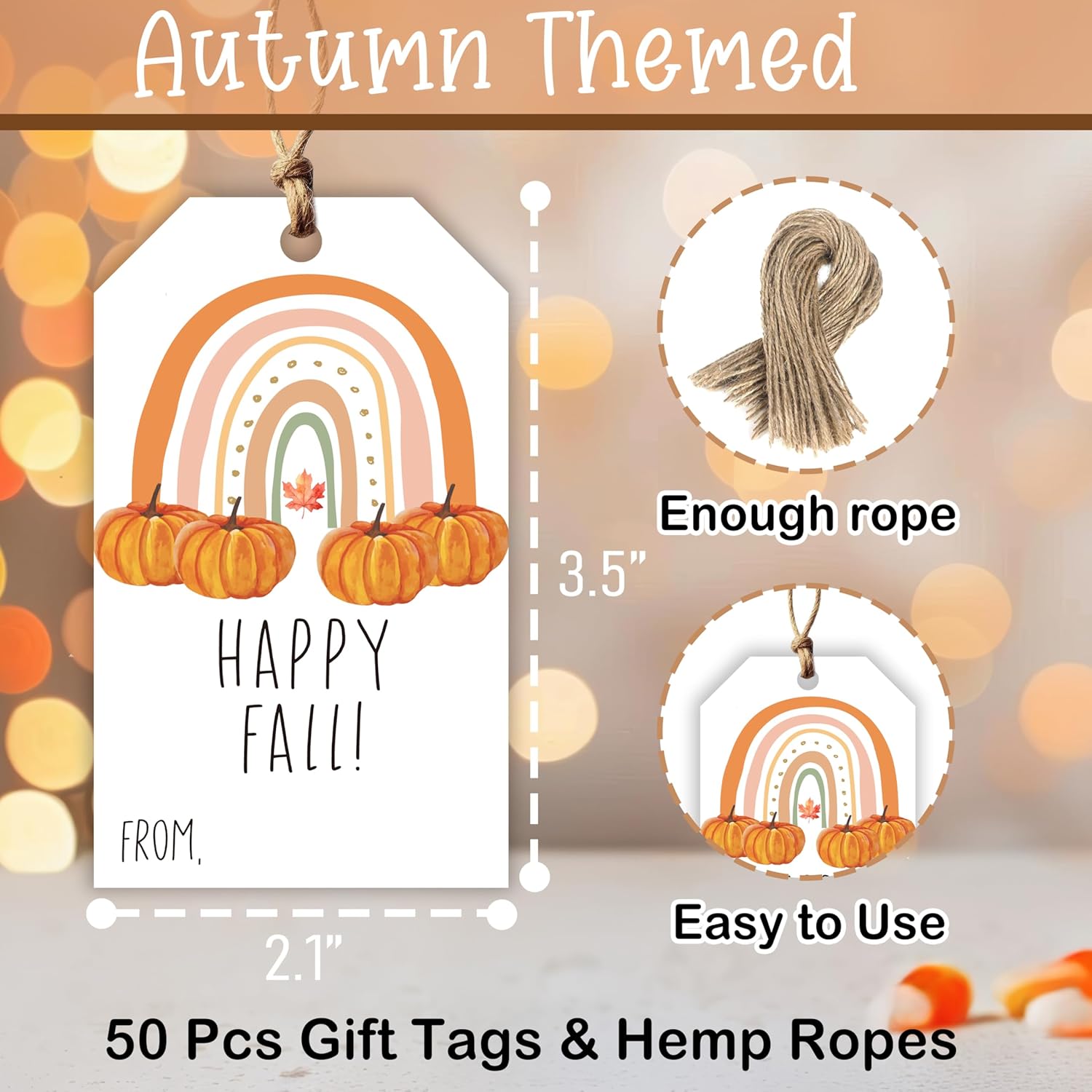 50 Pcs Fall Gift Tags, 2.1"×3.5" Autumn Bohemian Rainbow Thank You Gift Tags for Party Favors, Pumpkin Thanksgiving Gifts Tags for Party Favor - B11