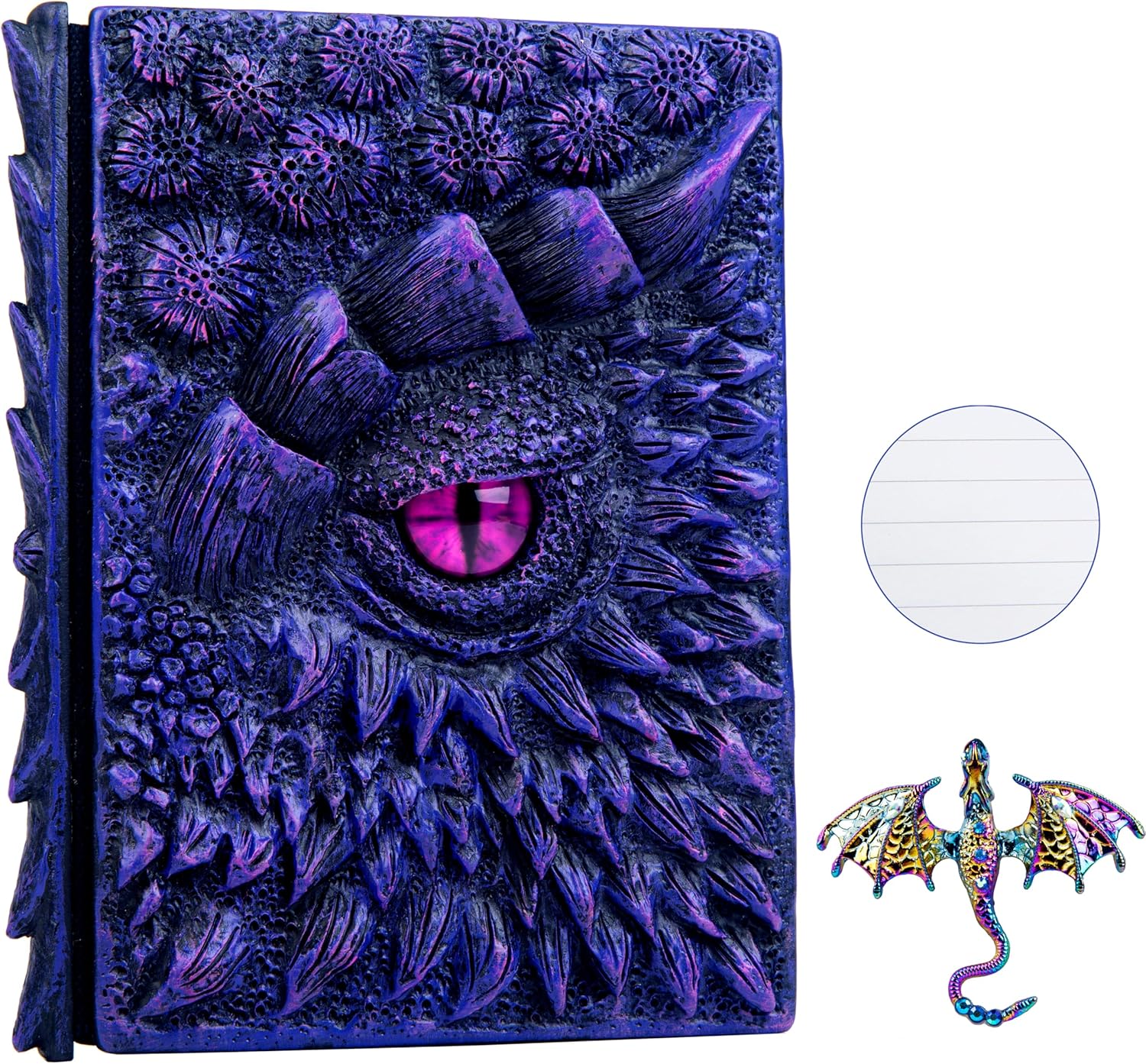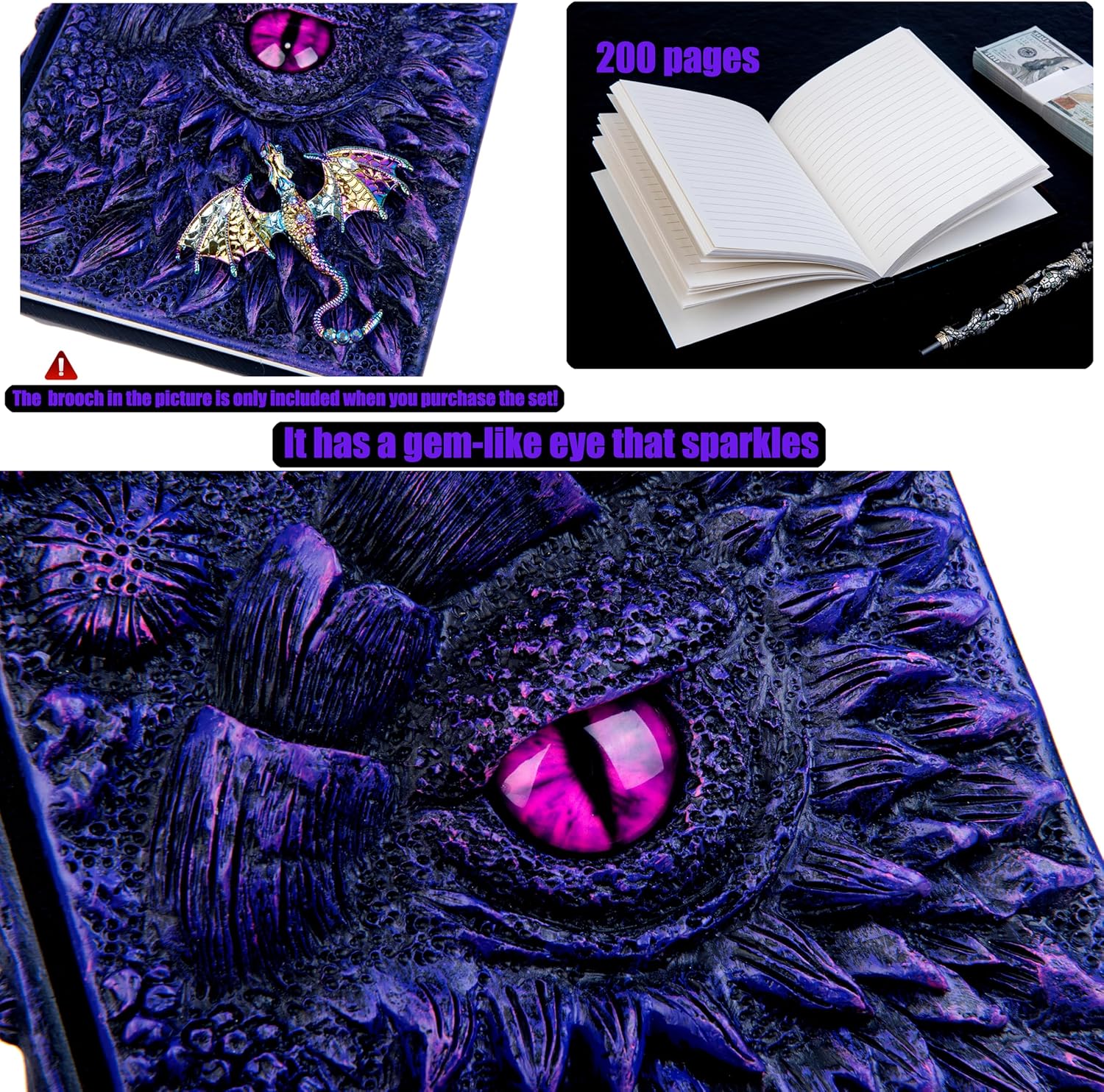 3D Dragon Eye Embossed Journal,Resin Engraving Notebook,Dnd notebook for Dragon Lovers ,Blank Paper,Hardcover Travel Notepad for Writing,Sketchbook,Collection,Gift,Decoration A4 and A5 Size (A5-Dark Purple-Lined-Brooch)