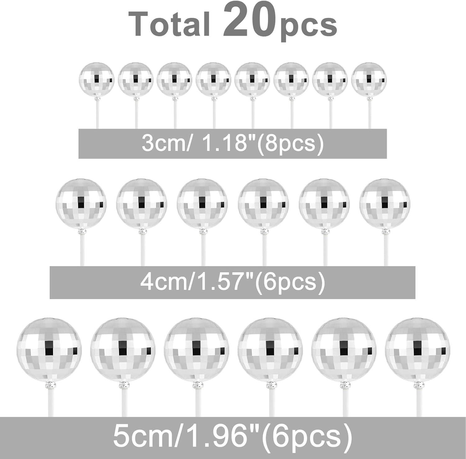 - Package includes: 20 pcs silver disco balls for cake decorations. there are 8 balls with a diameter of 1.18 inches/ 3 cm, 6 balls with a diameter of 1.57 inches/ 4 cmοΌ6 balls with a diameter of 1.96 inches/ 5 cm.