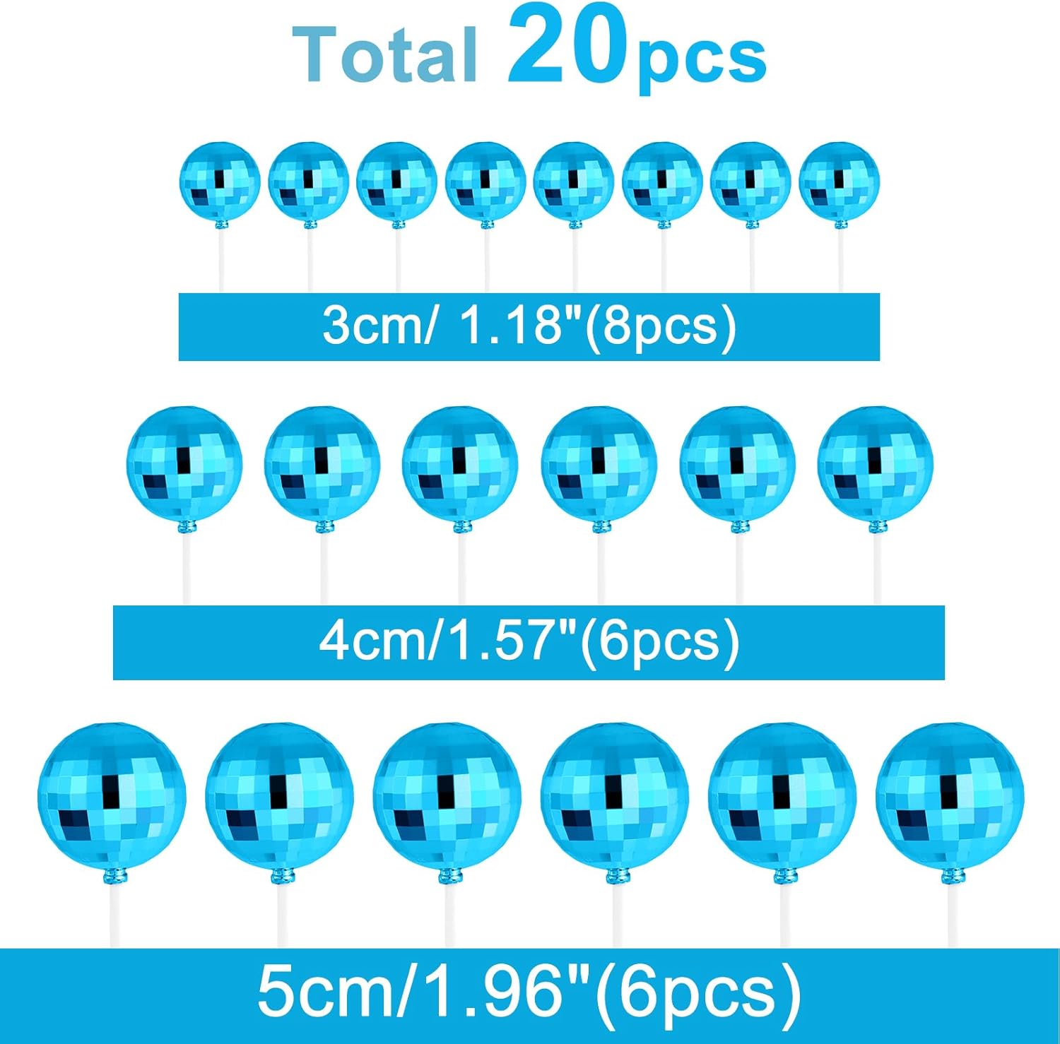 - Package includes: 20 pcs blue disco balls for cake decorations. there are 8 balls with a diameter of 1.18 inches/ 3 cm, 6 balls with a diameter of 1.57 inches/ 4 cmοΌ6 balls with a diameter of 1.96 inches/ 5 cm.