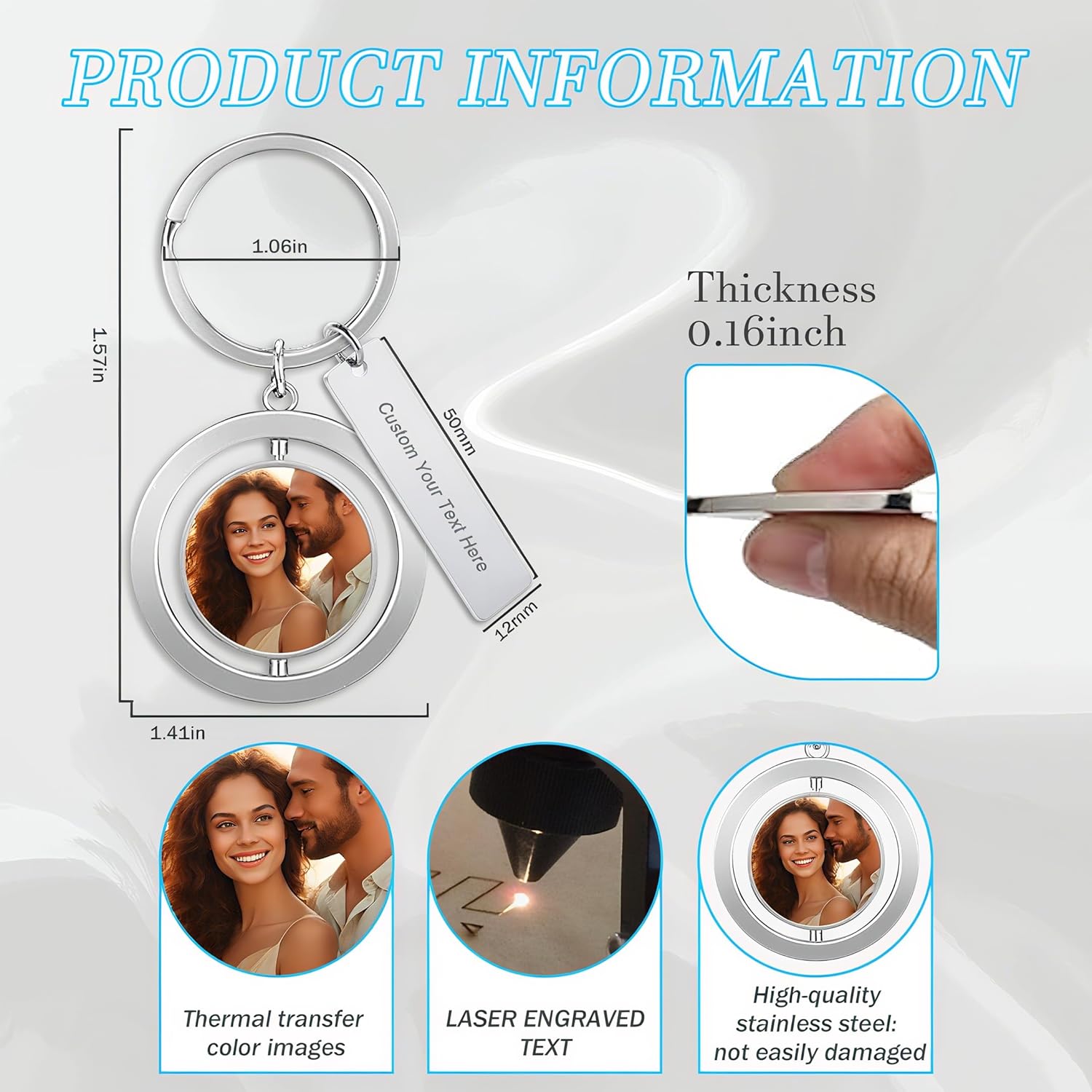 • Custom keychains: Each side can be individually designed, click "customize now" to upload a photo for the front and add engraved text to the back, creating a truly unique photo keychain