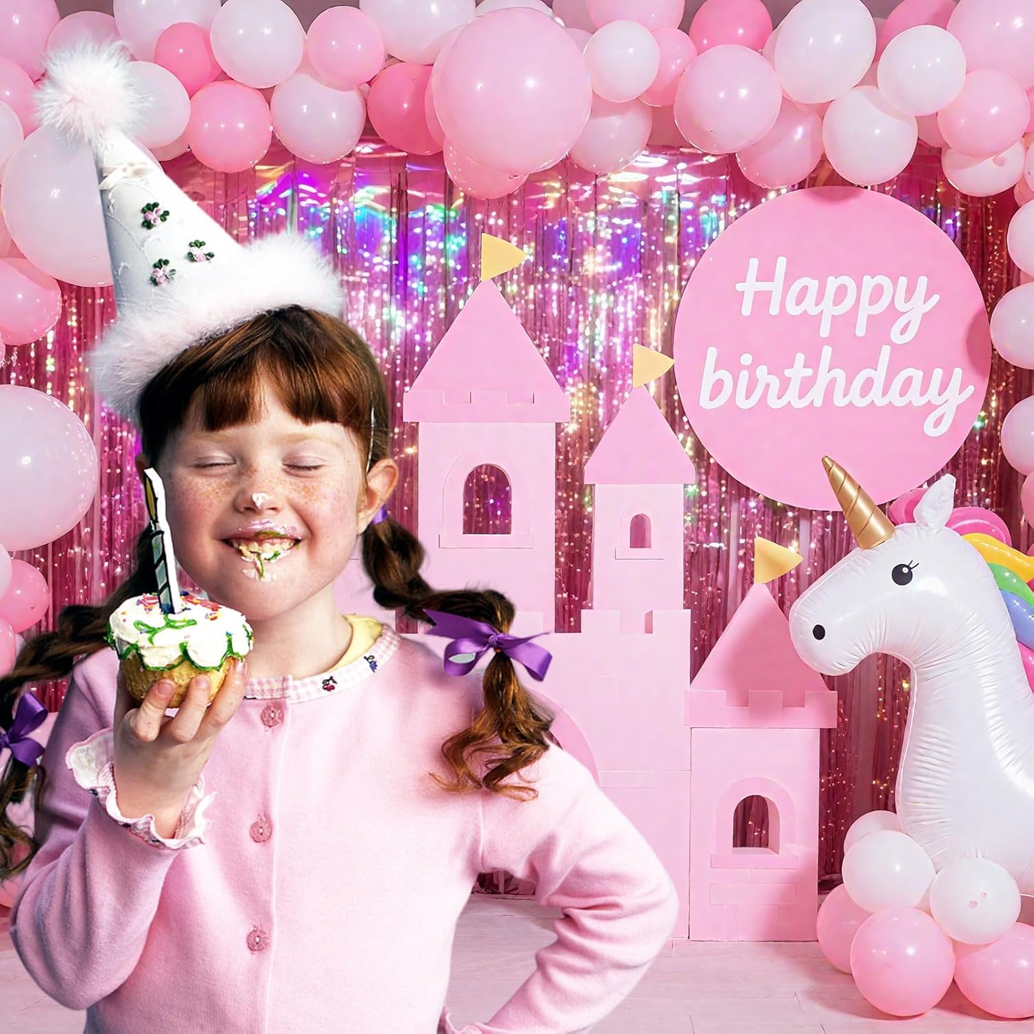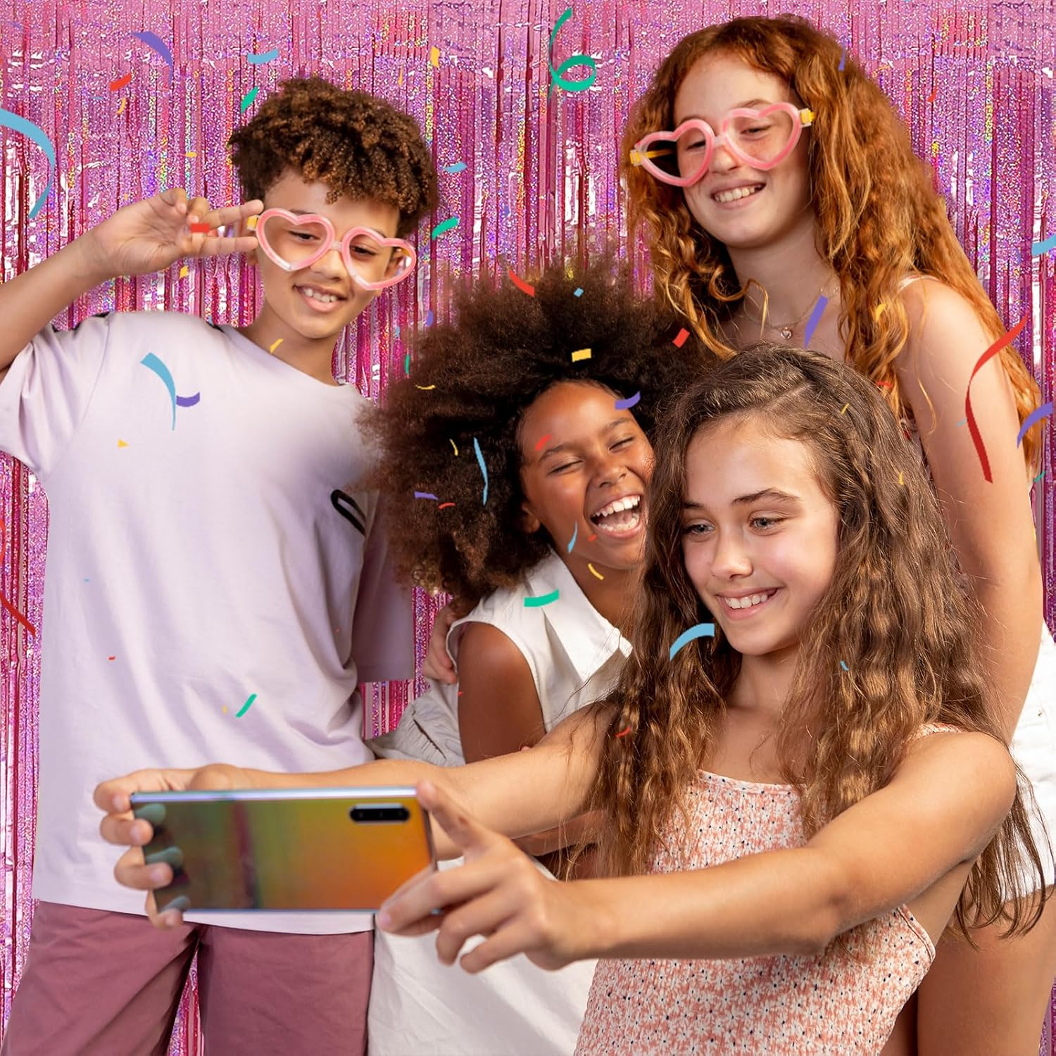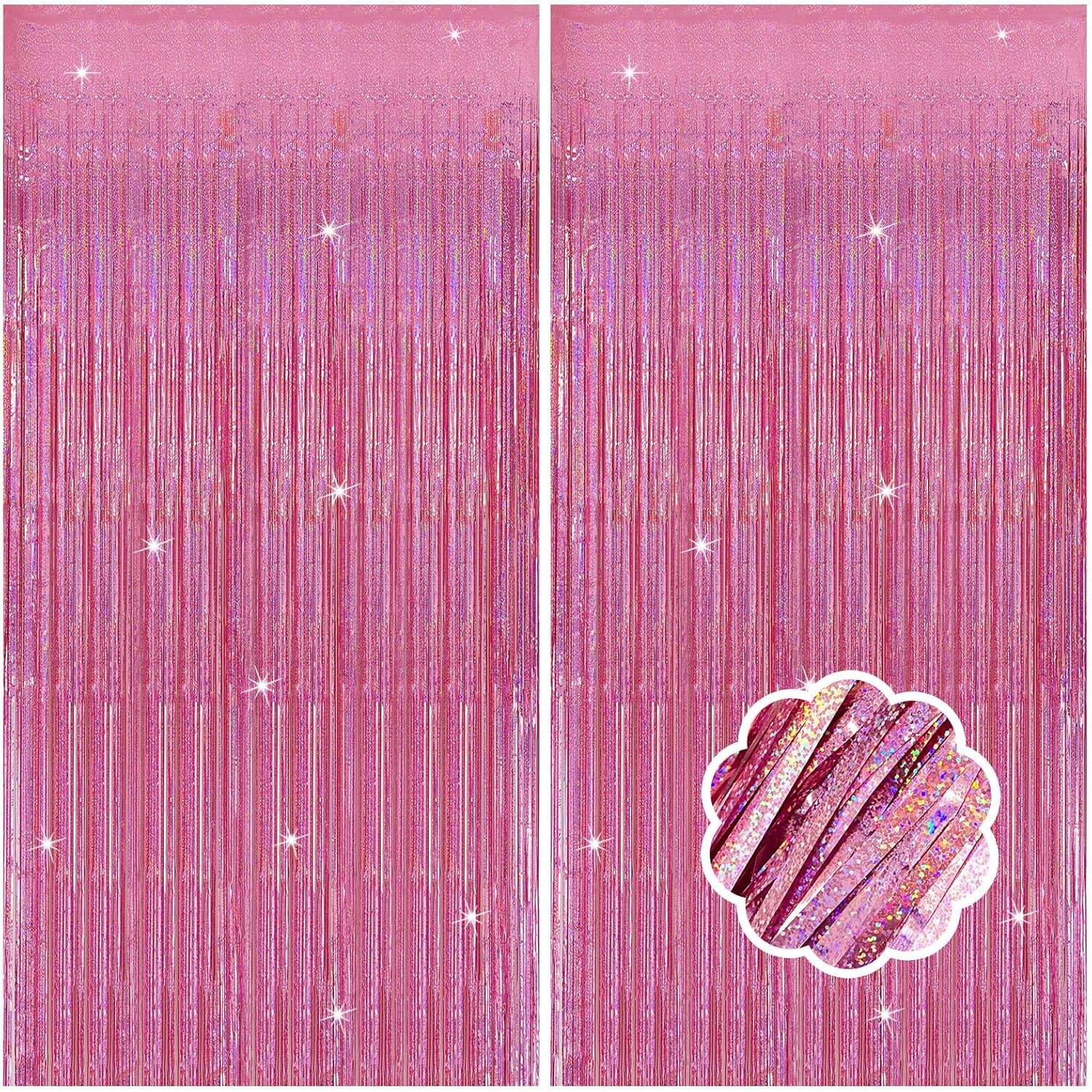 - Pink Fringe backdrop Set (2-Pack): Each dazzling curtain measures 3.28ft x 6.56ft – perfect for doors, walls, or photo booths! These extra-long foil streamers instantly transform any space into a party-ready celebration zone. Mix, layer, and customize your decor for the best results.