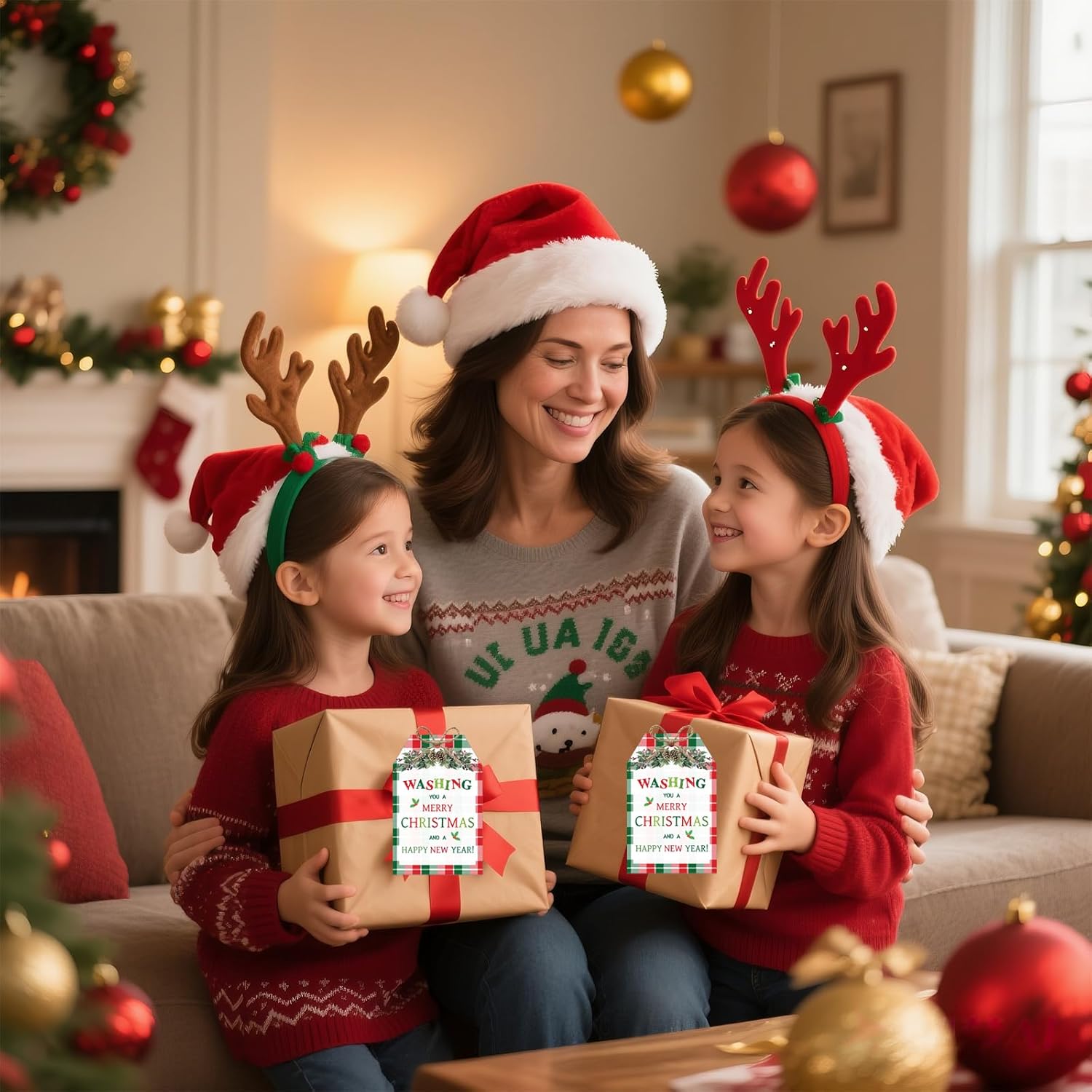 - [Easy to Use] Each tag comes with pre-punched holes, and the continuous string allows you to cut to your desired length for easy attachment. The back side is completely blank, offering a smooth surface for DIY messages, names, or holiday wishes. These Christmas present tags make wrapping and personalizing gifts quick, convenient, and fun for everyone.