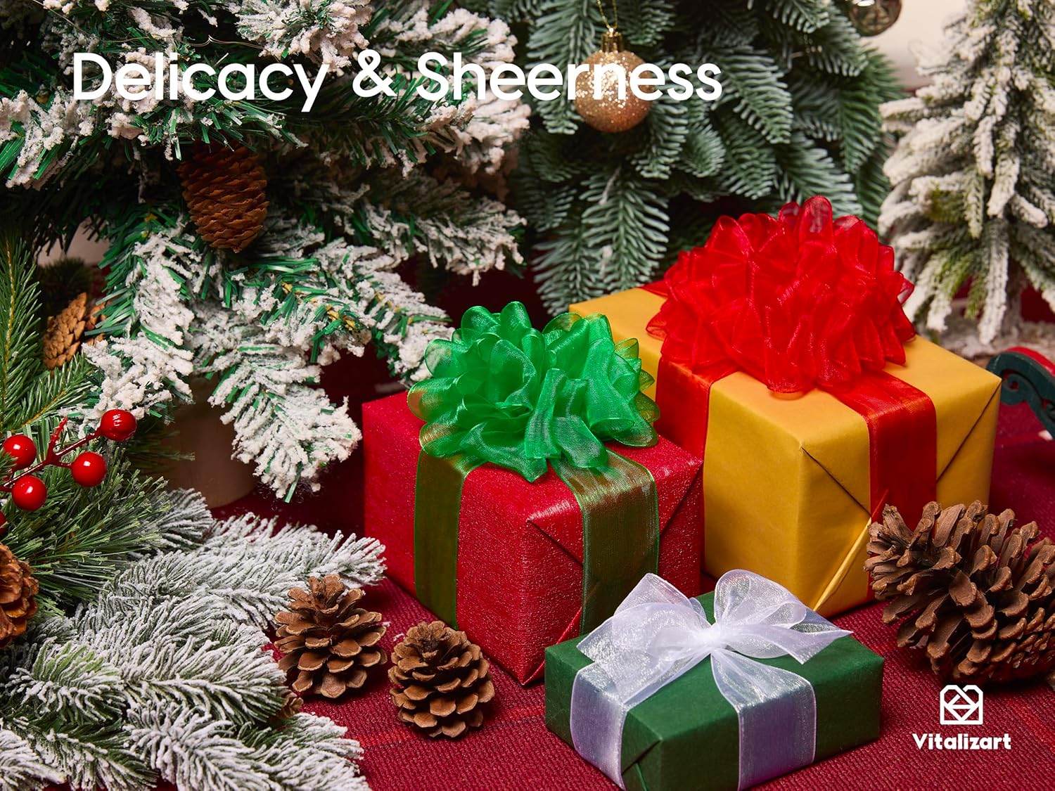 Vitalizart Organza Ribbon 1.5" x 30 Yd Christmas Sheer Ribbons Set 10 Yd x 3 Rolls Red Green White for Christmas Decor Gift Wrapping Crafts Bows Wedding Invitations Wreaths Bouquet