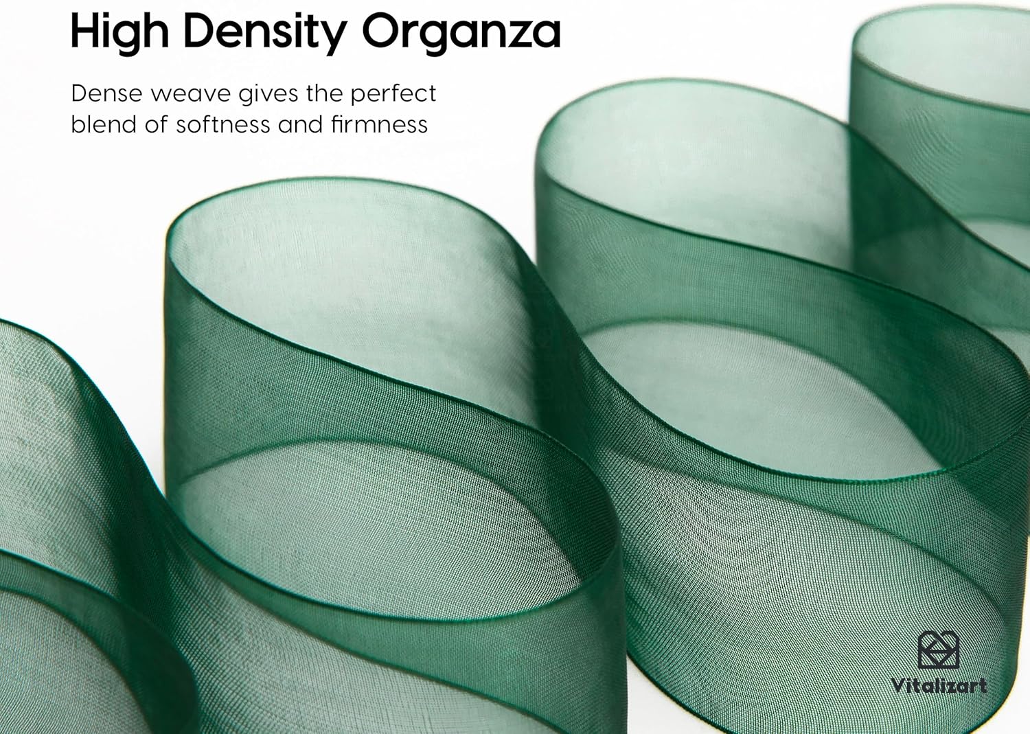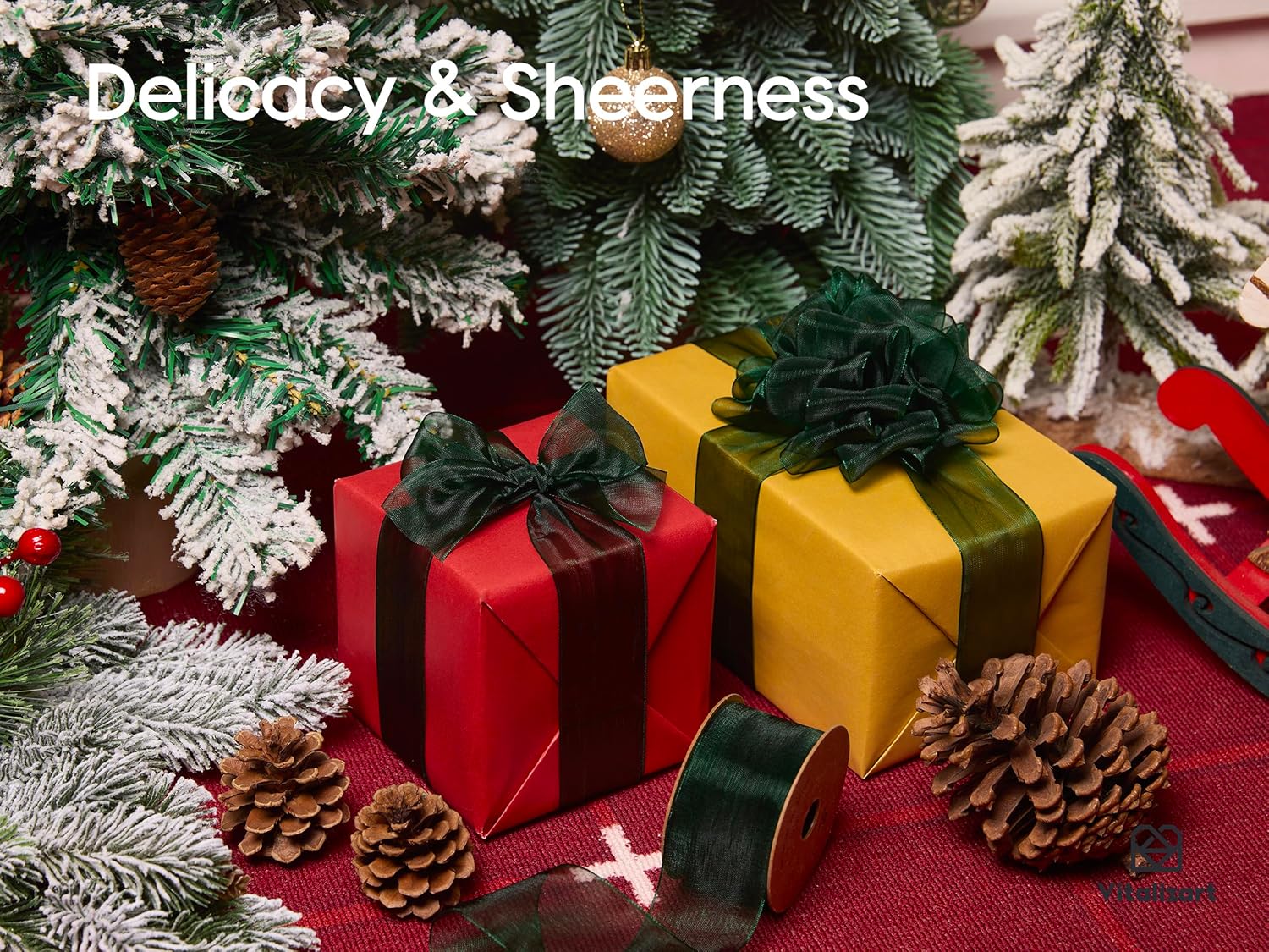 Vitalizart Green Organza Ribbon 1.5" x 30 Yd Sheer Ribbons Dark Green for Christmas Decor Gift Wrapping Crafts Bows Wedding Invitations Wreaths Bouquet