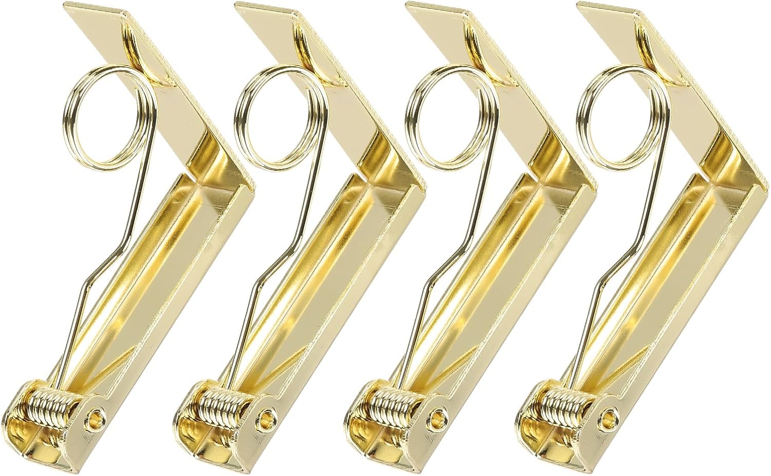 uxcell 4 Pack Tablecloth Clips, Stainless Steel Table Cloth Cover Clamps, 2.87" x 2.36" Windproof Holder Clips for Home Party Picnic Wedding Camping Dining Tables, Gold