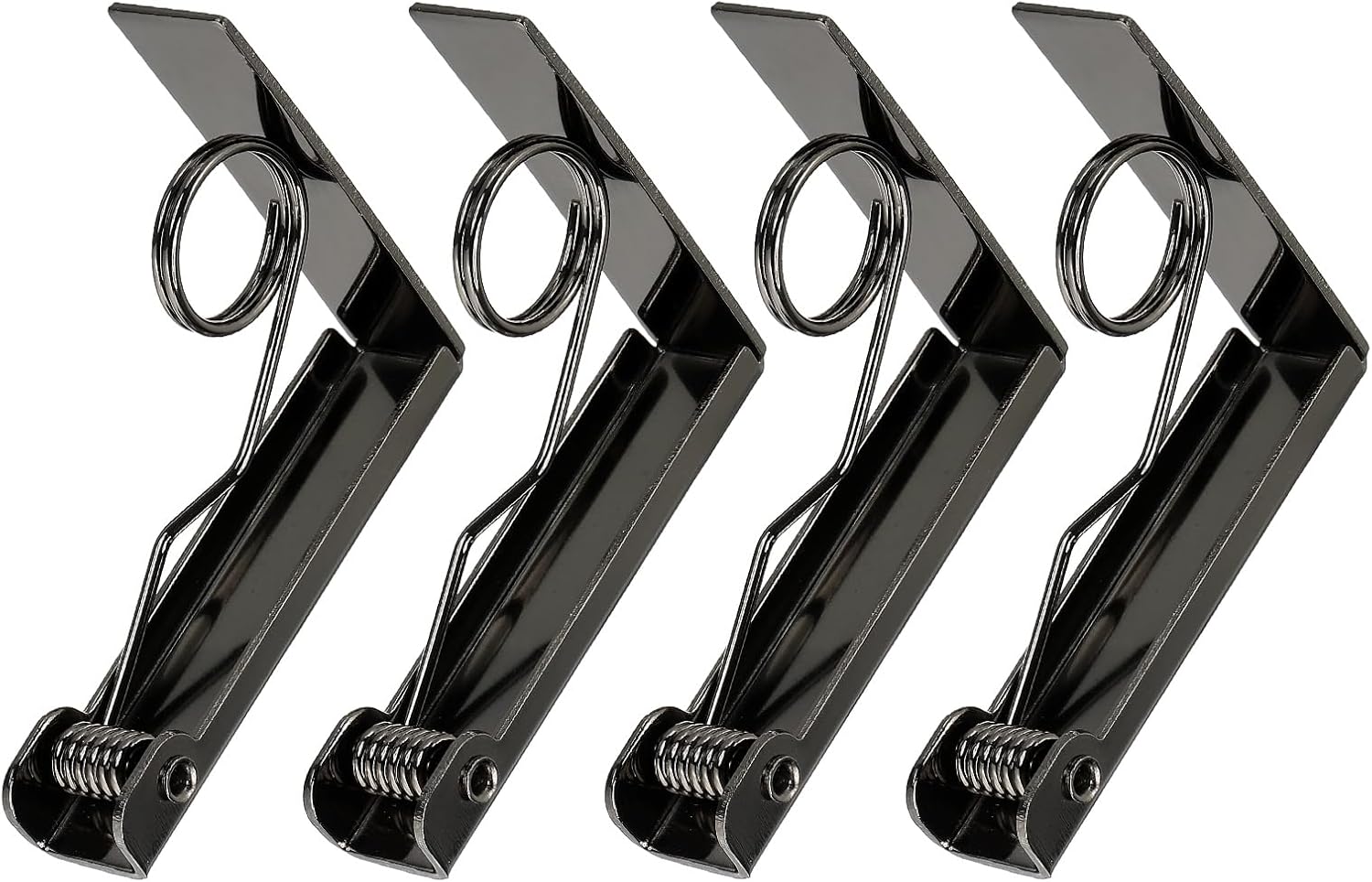 uxcell 4 Pack Tablecloth Clips, Stainless Steel Table Cloth Cover Clamps, 2.87" x 2.36" Windproof Holder Clips for Home Party Picnic Wedding Camping Dining Tables, Metallic Black