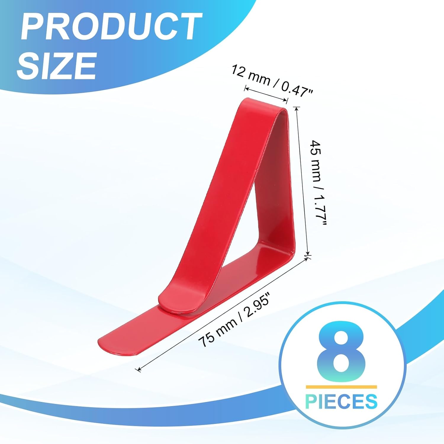 - What You Get: The Package comes with 8 pieces of tablecloth clips, with 75 x 12 x 45mm/2.95 x 0.47 x 1.77inch(L*W*H) in total size. Simple and generous design and sufficient quantity, enough to meet your daily needs and share with others