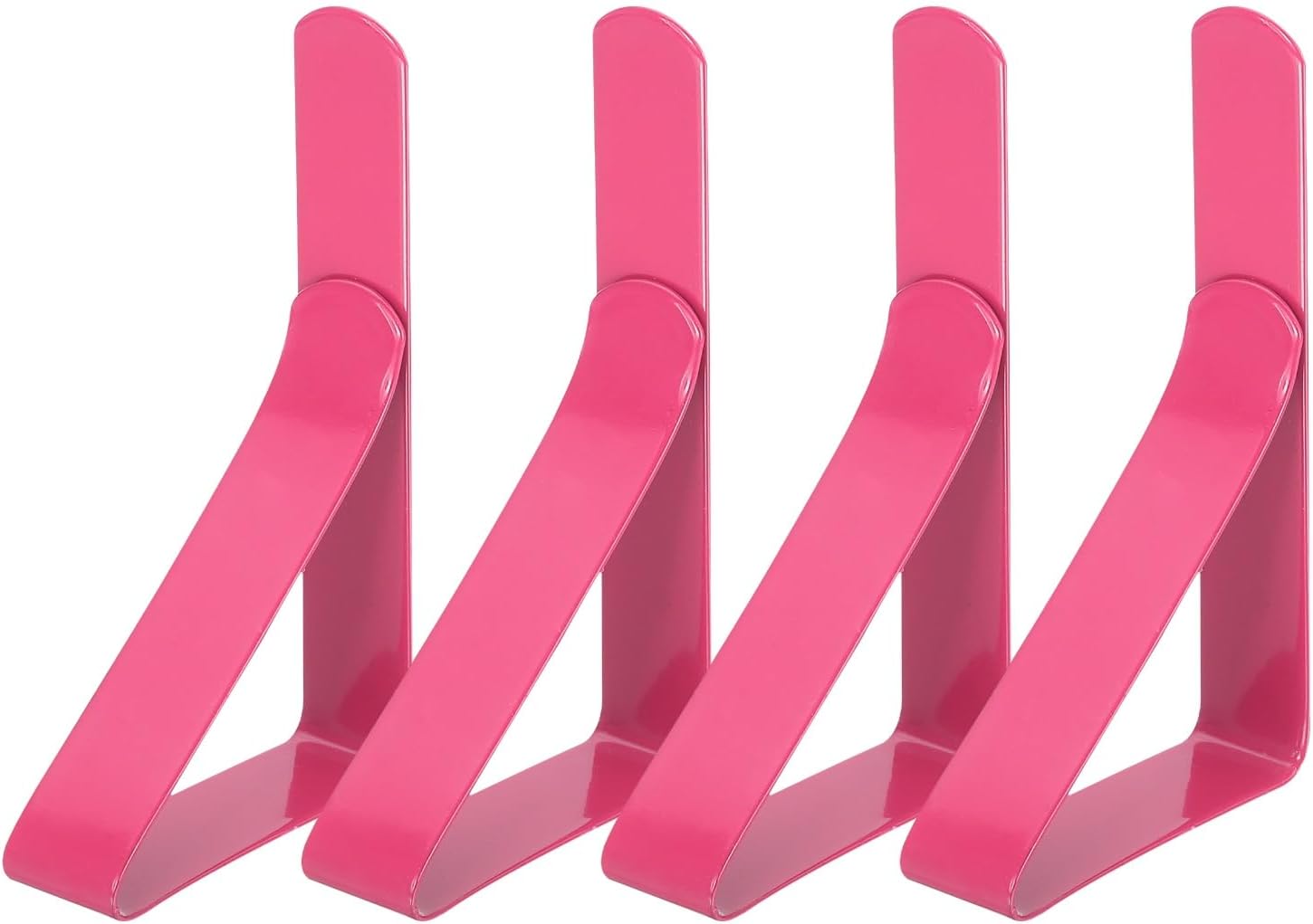 uxcell 4 Pack Tablecloth Clips, Stainless Steel Table Cloth Cover Clamps, 2.95" x 1.77" Windproof Holder Clips for Home Party Picnic Wedding Camping Dining Tables, Pink