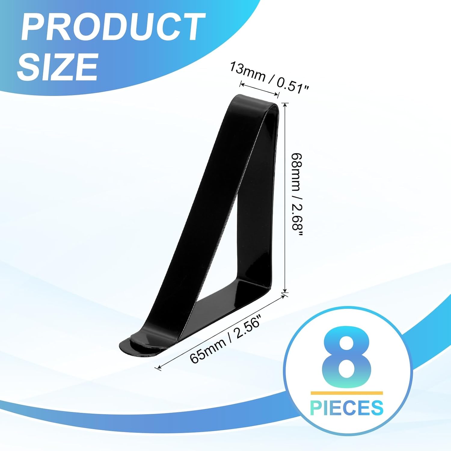uxcell 8 Pack Tablecloth Clips, Stainless Steel Table Cloth Cover Clamps, 2.56" x 2.68" Windproof Holder Clips for Home Party Picnic Wedding Camping Dining Tables, Black