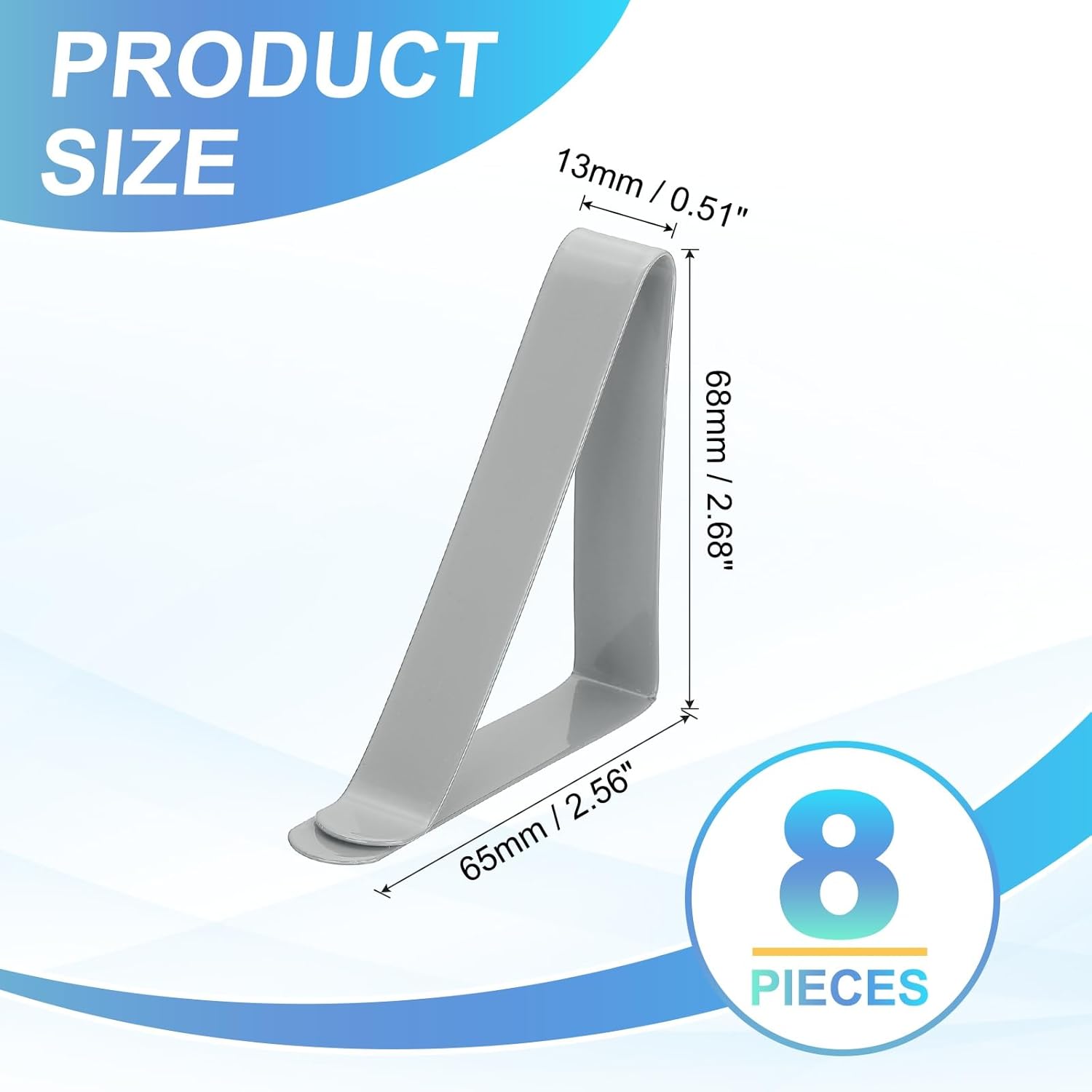 - What You Get: The Package comes with 8 pieces of tablecloth clips, with 65 x 13 x 68mm/2.56 x 0.51 x 2.68inch(L*W*H) in total size. Simple and generous design and sufficient quantity, enough to meet your daily needs and share with others
