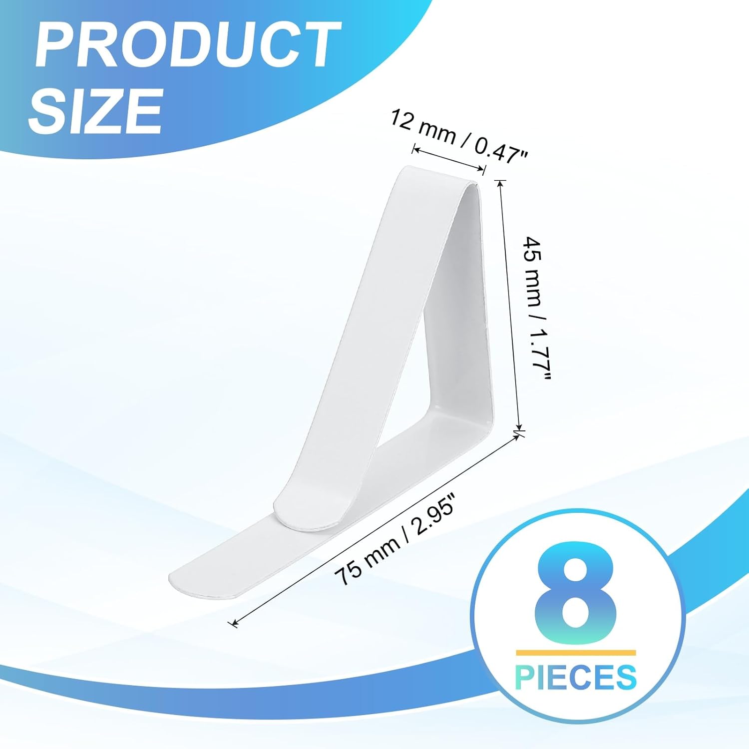 uxcell 8 Pack Tablecloth Clips, Stainless Steel Table Cloth Cover Clamps, 2.95" x 1.77" Windproof Holder Clips for Home Party Picnic Wedding Camping Dining Tables, White
