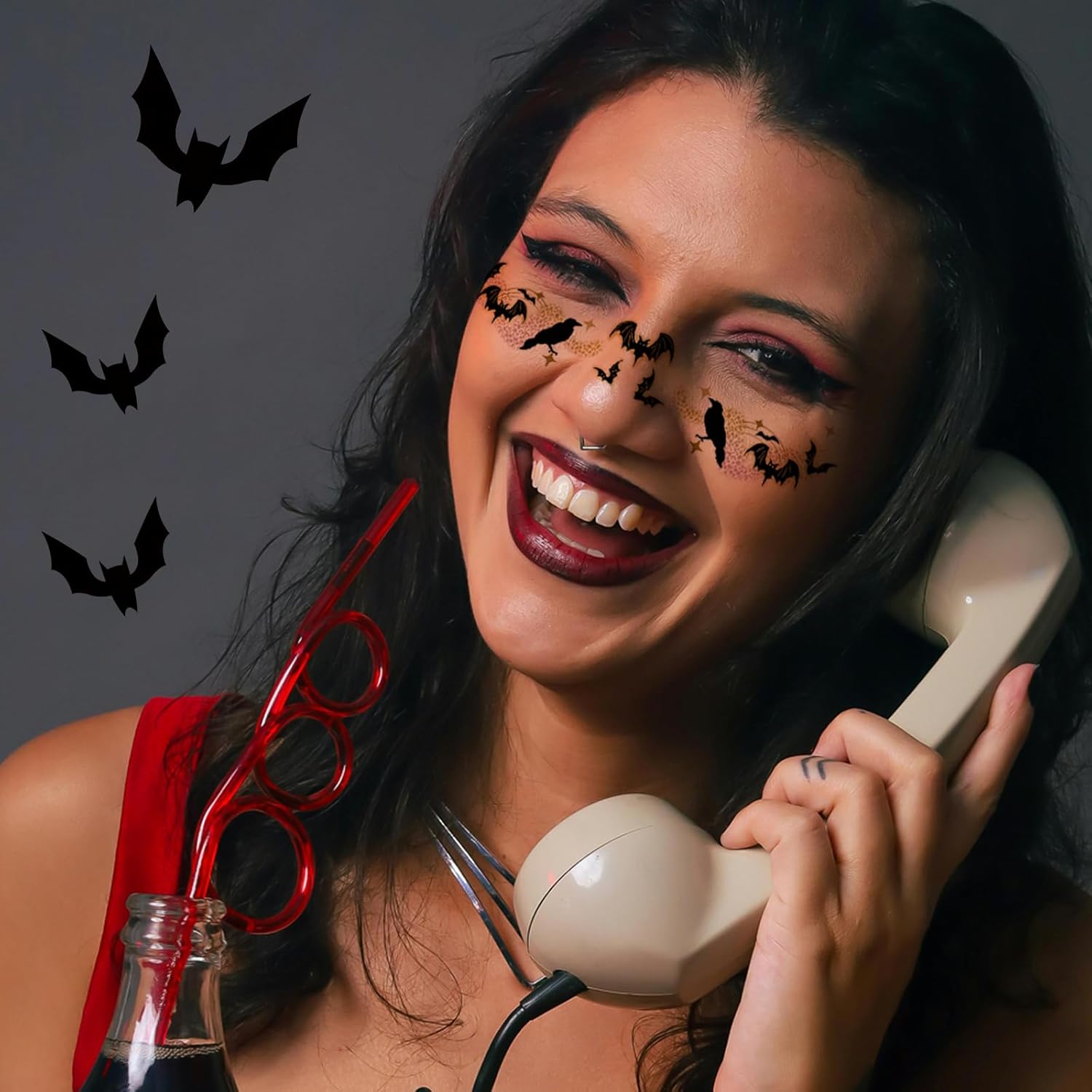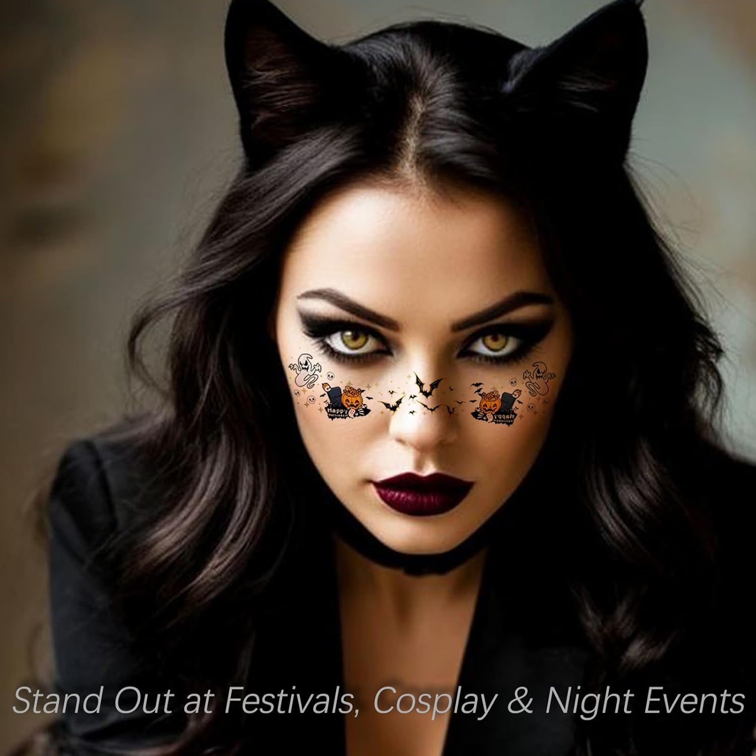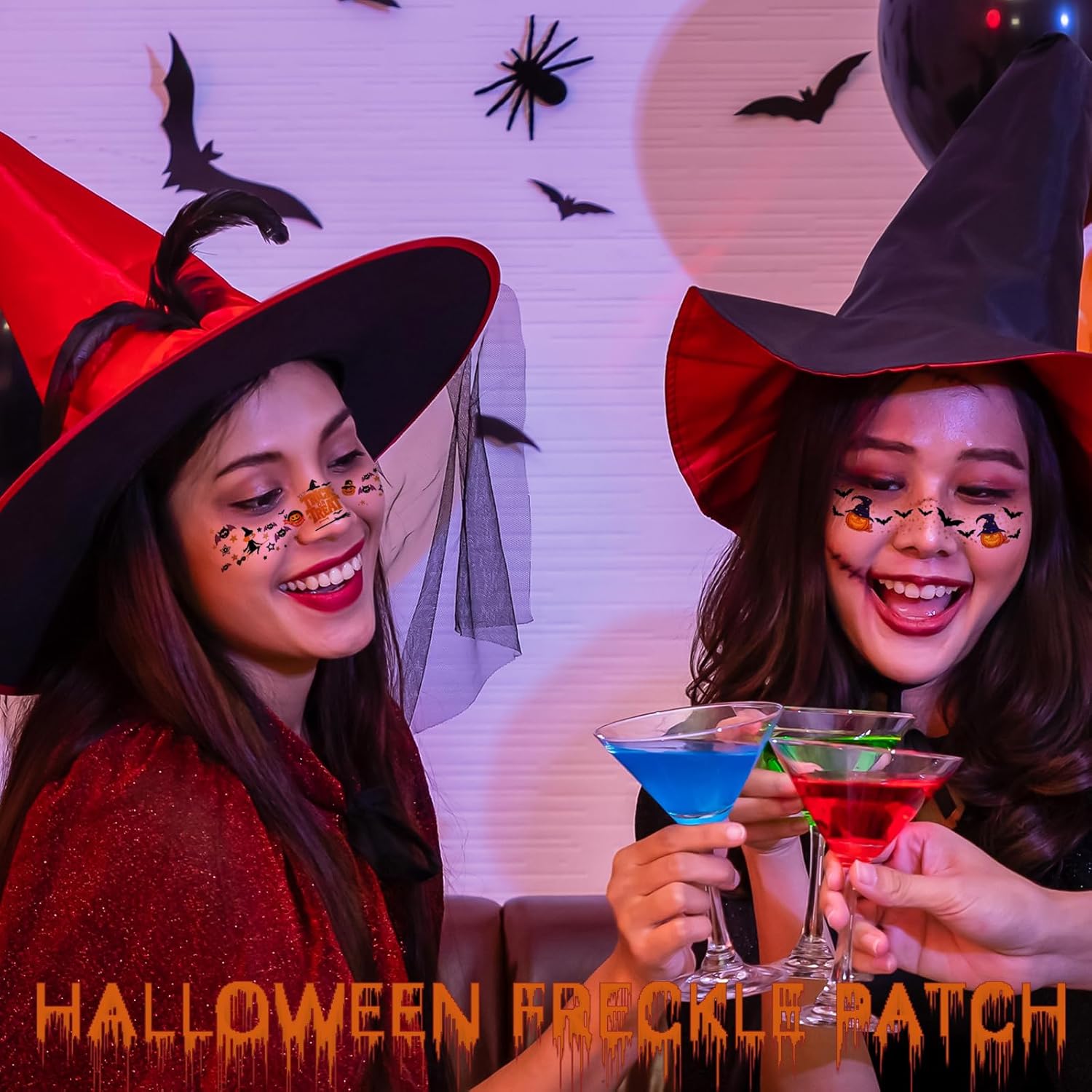 Glitter Freckles, 24PCS Glitter Freckles Face Tattoo, Sparkle Freckles for Women, Waterproof Gold Temporary Face Tattoos Glitter Glow Up Patches Makeup Patches (Halloween 10pcs)