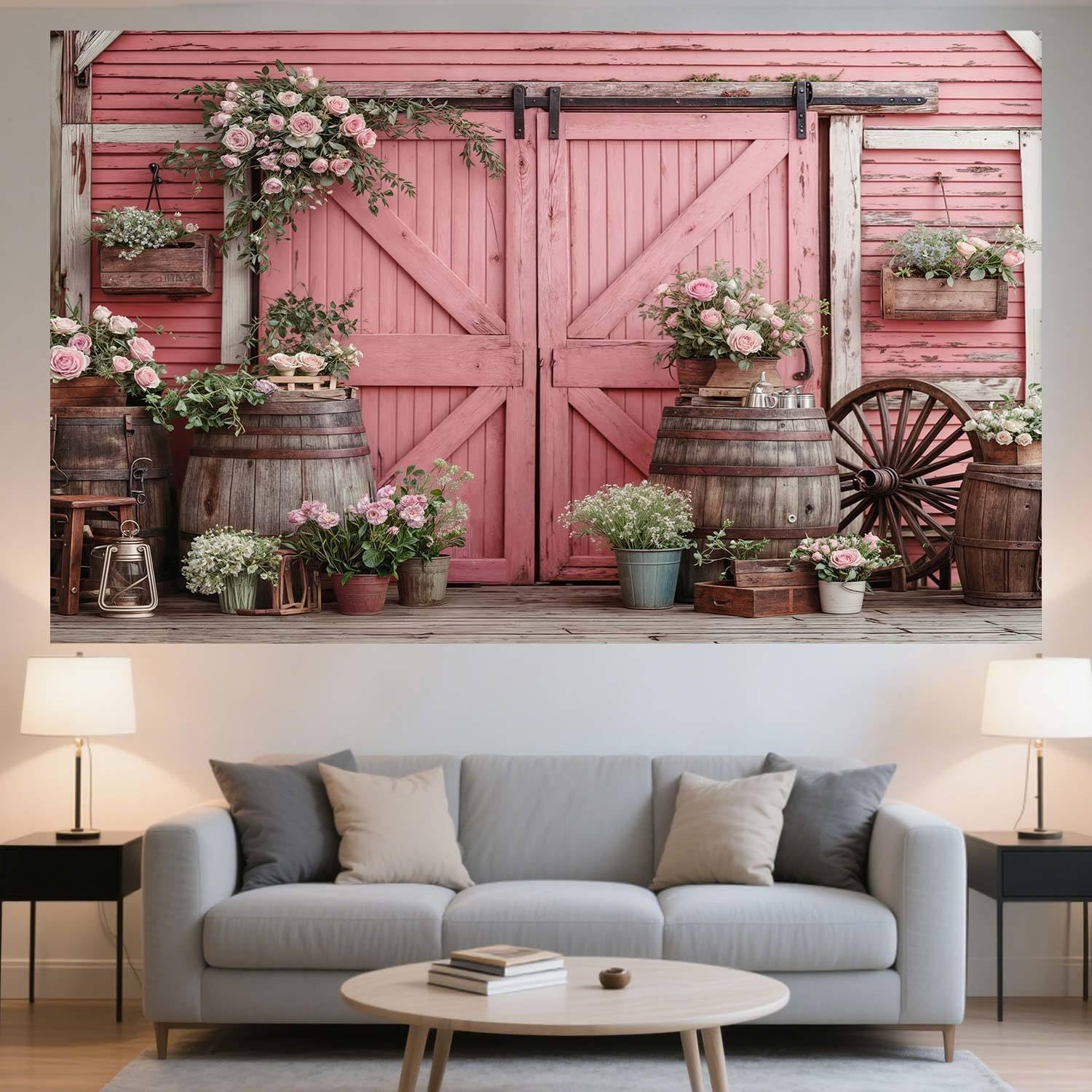 15x10ft Country Wedding Pink Photography Backdrop Rustic Wooden Door Photography Backdrop Farmhouse Flower Western Girl Birthday Baby Shower Wedding Bridal Party Banner Photo Booth Props Background