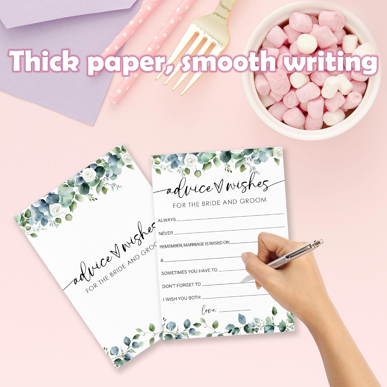 Advice & Wishes - Botanical Bridal Shower Game Cards - 50 Pcs Eucalyptus Leaves Game Cards - Funny Wedding Party Games for Bride & Groom - Activities for Bachelorette Party - A02