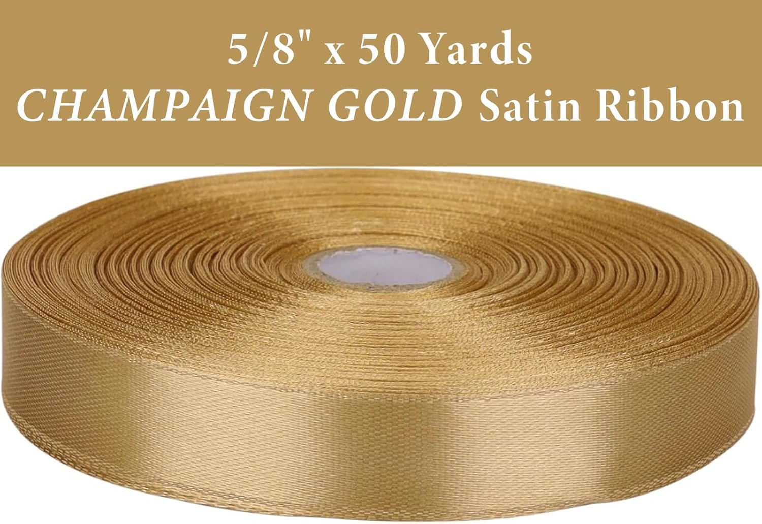 5/8" x 50 Yards Champaign Gold Satin Ribbon Single Faced Fabric Ribbons for Gift Wrapping, Crafting, Bows Making, Sewing, Wedding, Home Decor